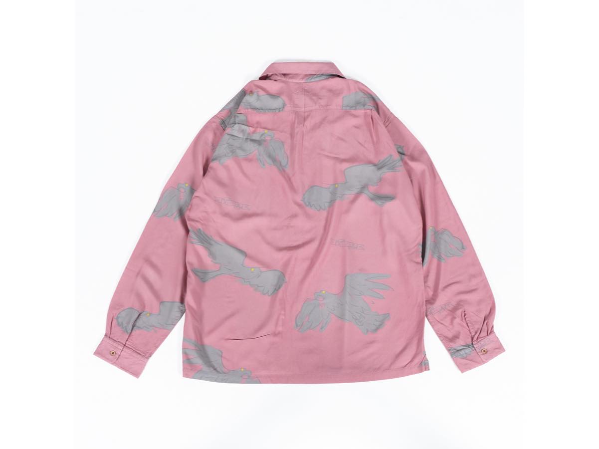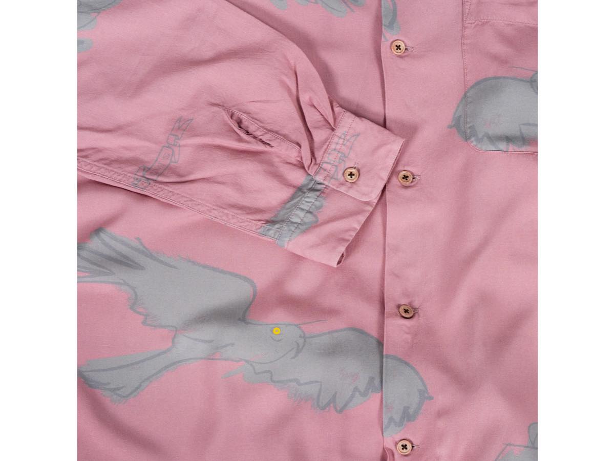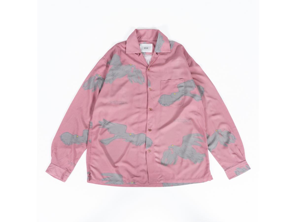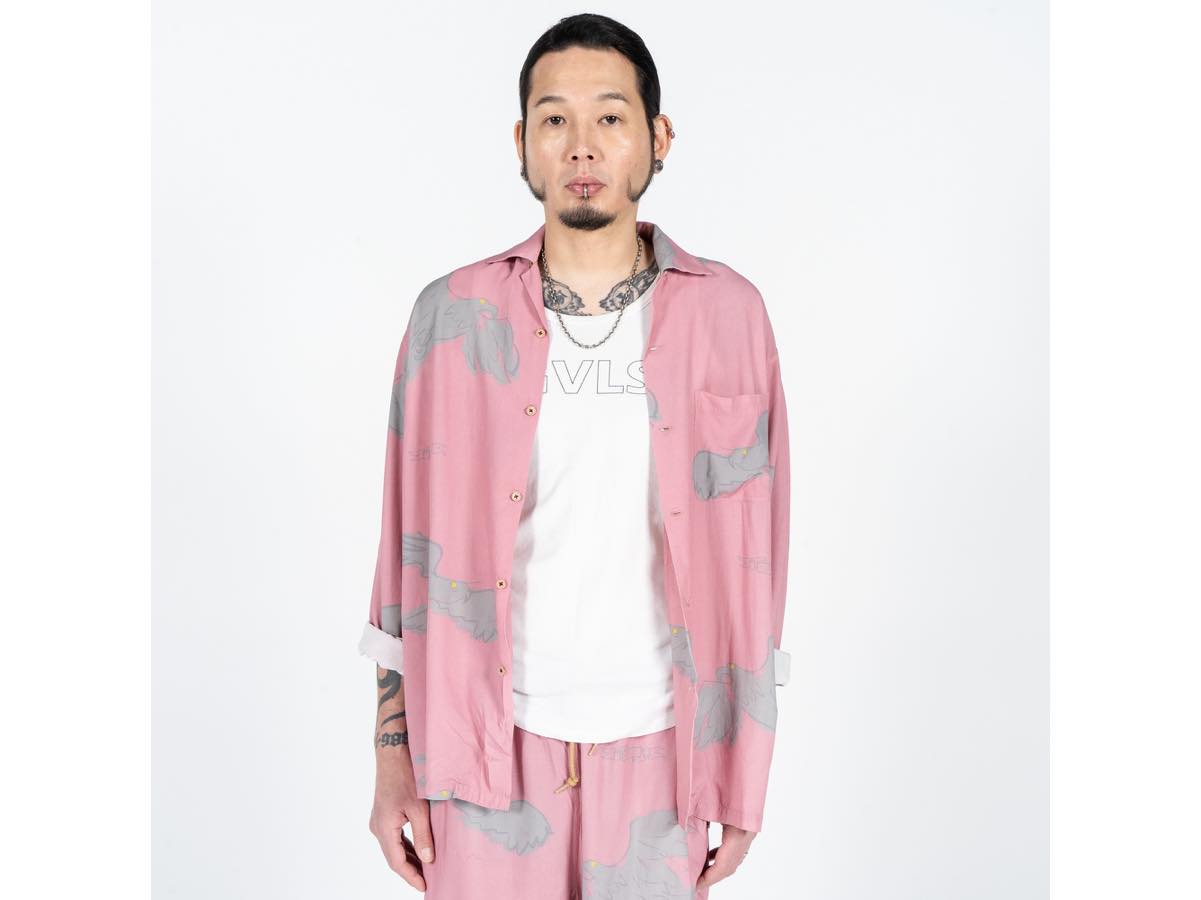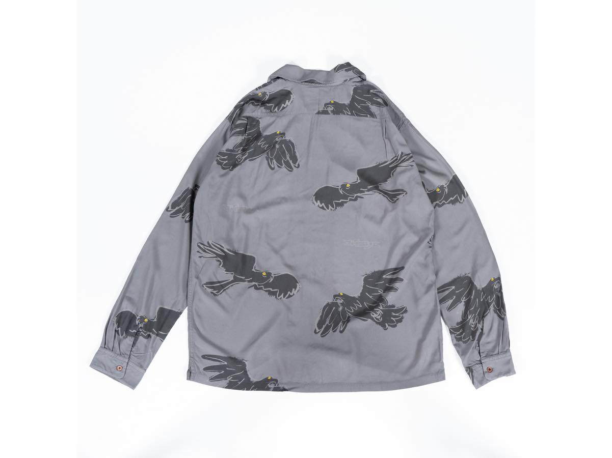 “今季も独特な画風を持つ中村達也氏手描きのイラストレーションがデザインされたオリジナルの生地のGVLS夏のイメージとして定番化されているアロハシャツ。 ”鳥” のイラストの その自在に飛び回る姿、空気をそのまま纏えるよう、大きめの柄・色・素材の“軽やかさ”に徹底的にこだわったアイテムとなっています。 こちらは長袖シャツver.”