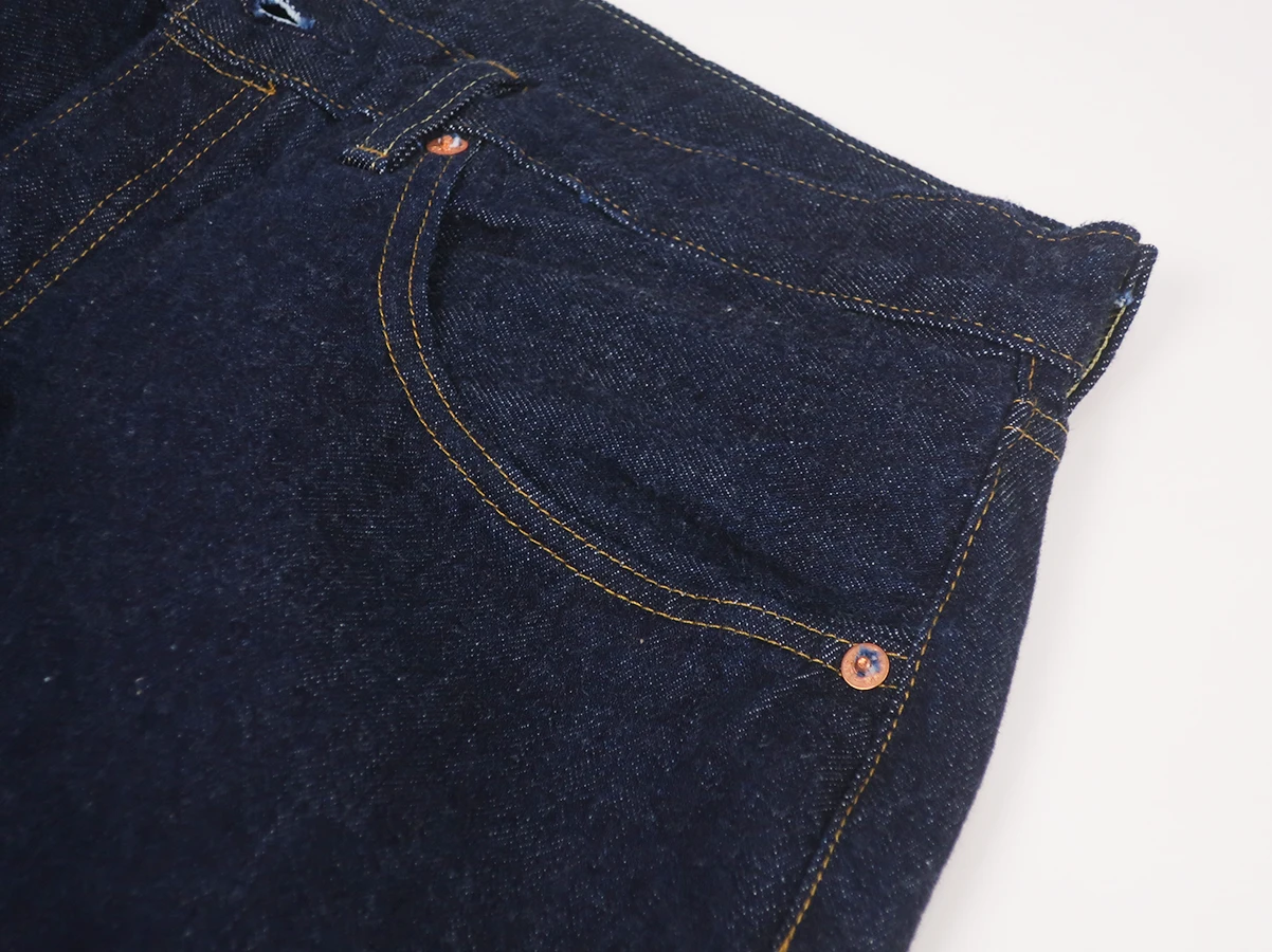 前身となった1947年の501Rから一部のクラシックな特徴を受け継ぎ、ウエスト調整手段はベルトループのみで、バックポケットにカッパー製隠しリベット、ジンクボタンのフライをほどこしています。