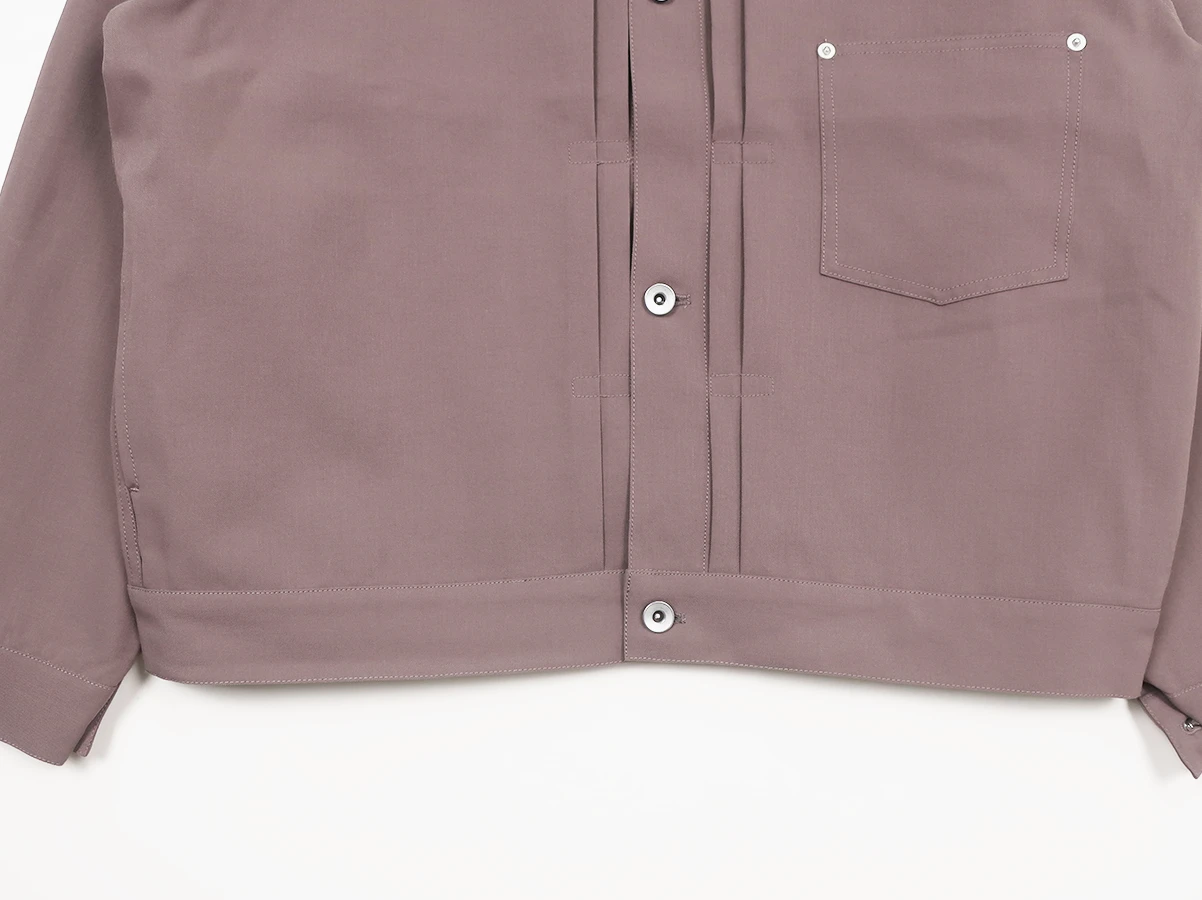 クラシックなファーストタイプのトラッカージャケットデザインを採用し、洗練されたシルエットに仕上げています。