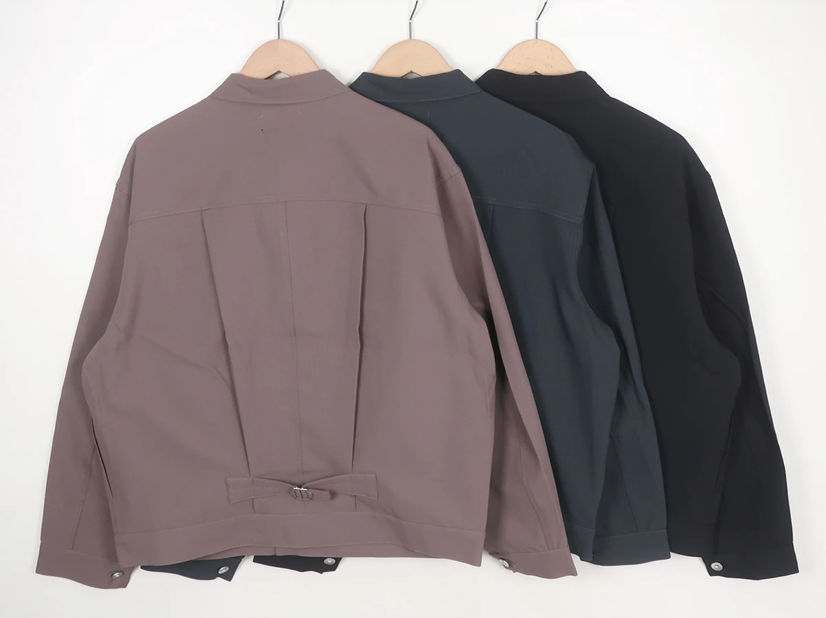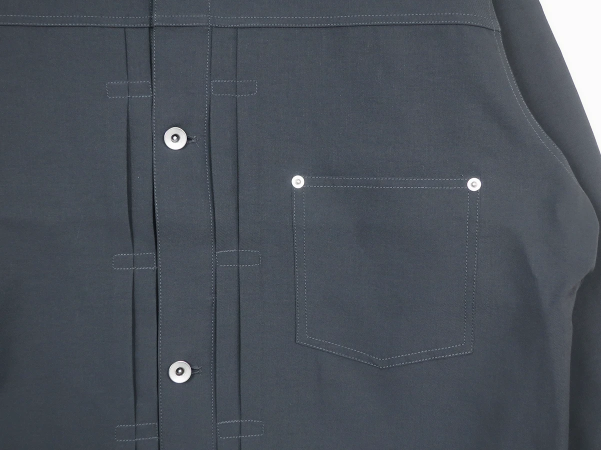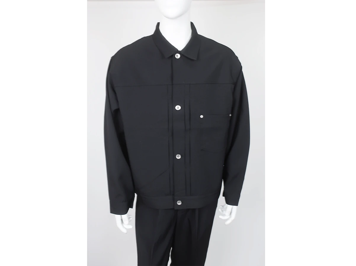 マットな質感のポリエステル糸を使用したテックツイルのトラッカージャケット。