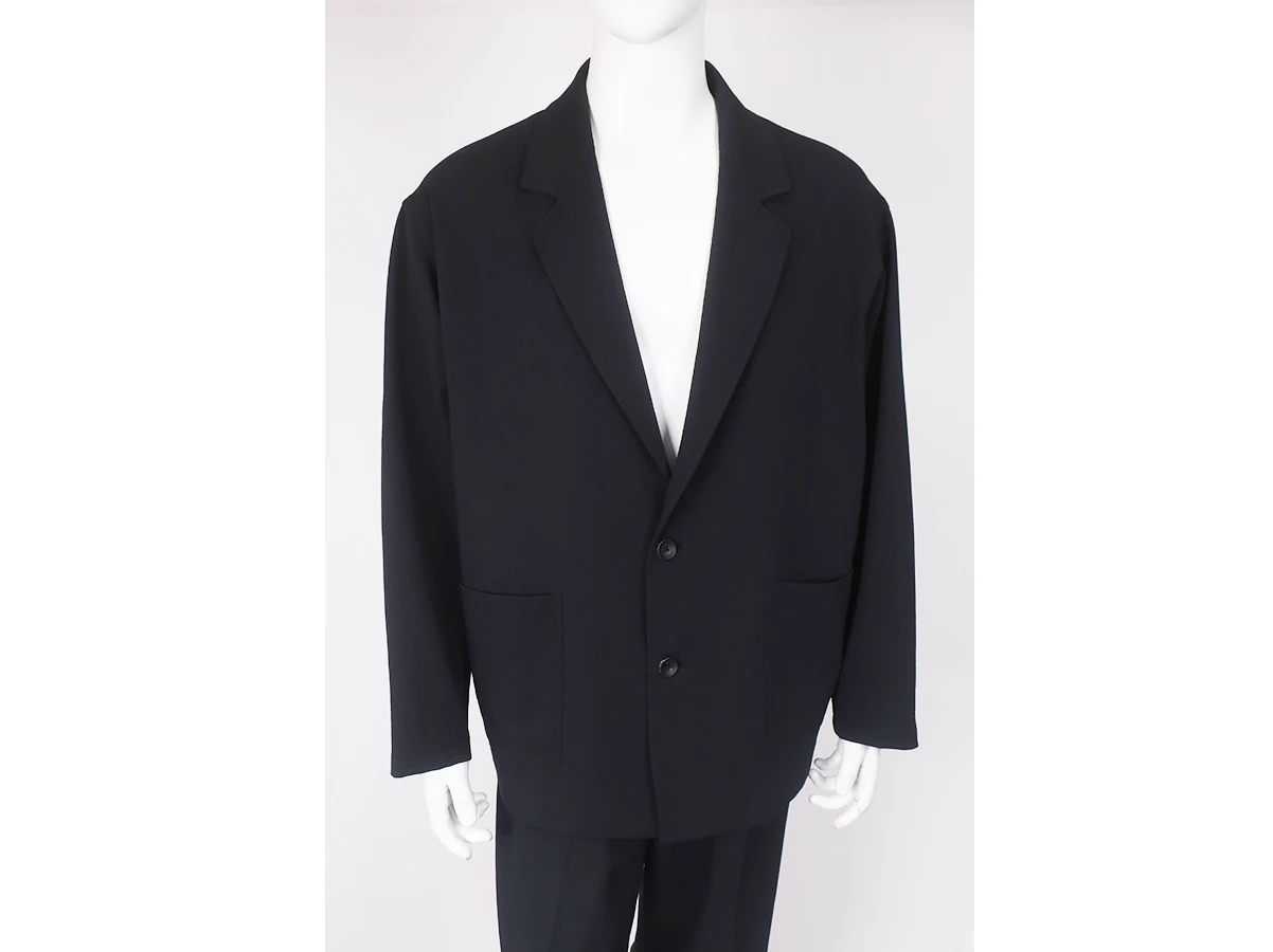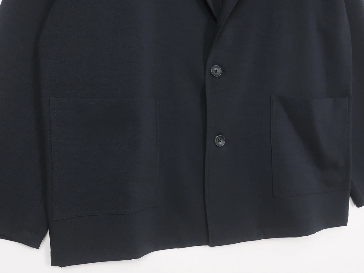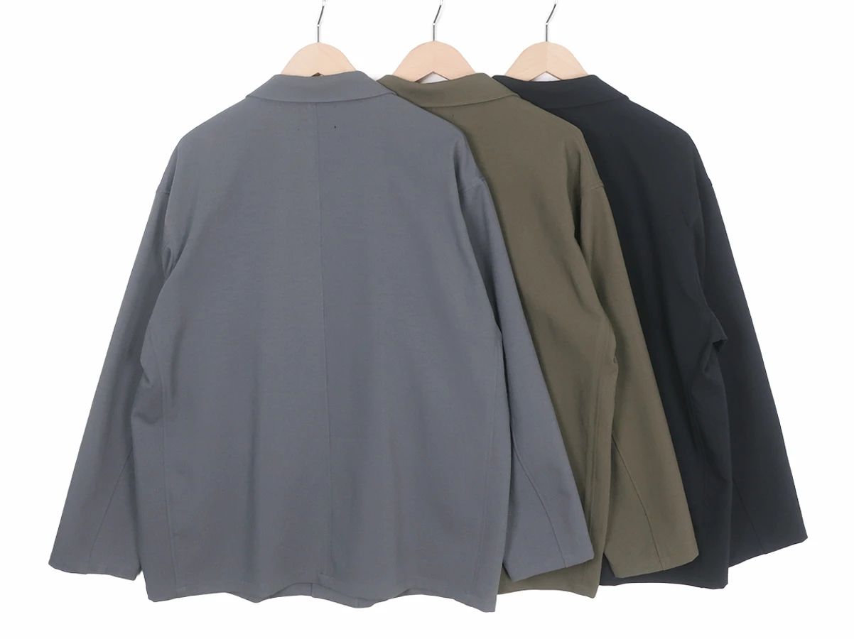 ポリエステルをベースにした二重織素材を採用したテーラードジャケット。ウォッシャブル2WAYストレッチの機能素材をベースに程よい肉感としなやかさを兼ね備え、上品な表情を持ちながらも軽量で扱いやすい質感が特徴。