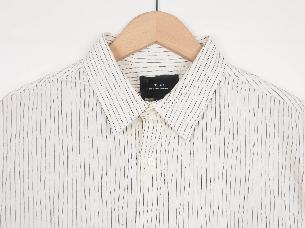 【SLICK スリック】Pinstripe Tuck Jacquard Drawstring Regular Shirts シャツ