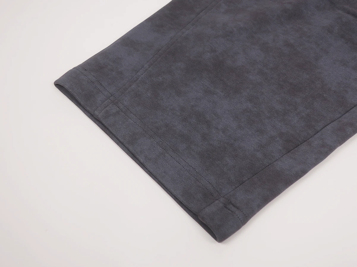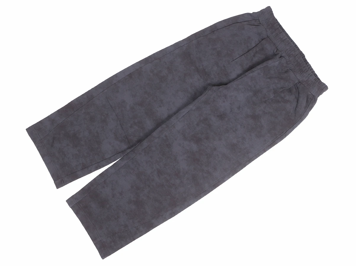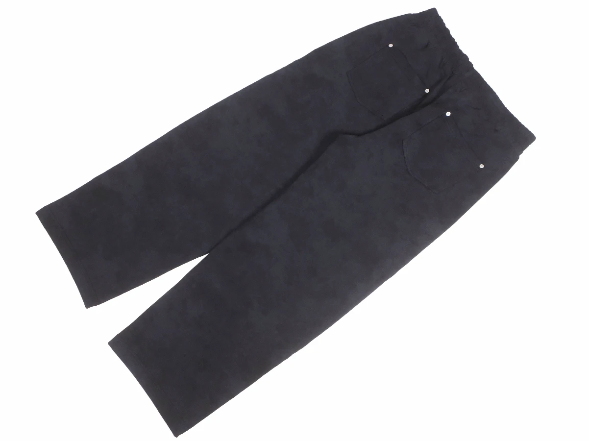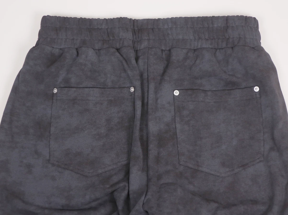 プリントによってユーズド加工のような表情を加えた裏毛素材を使用したスウェットパンツ。