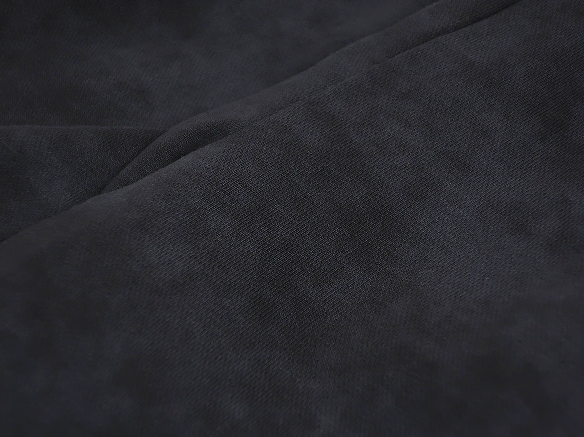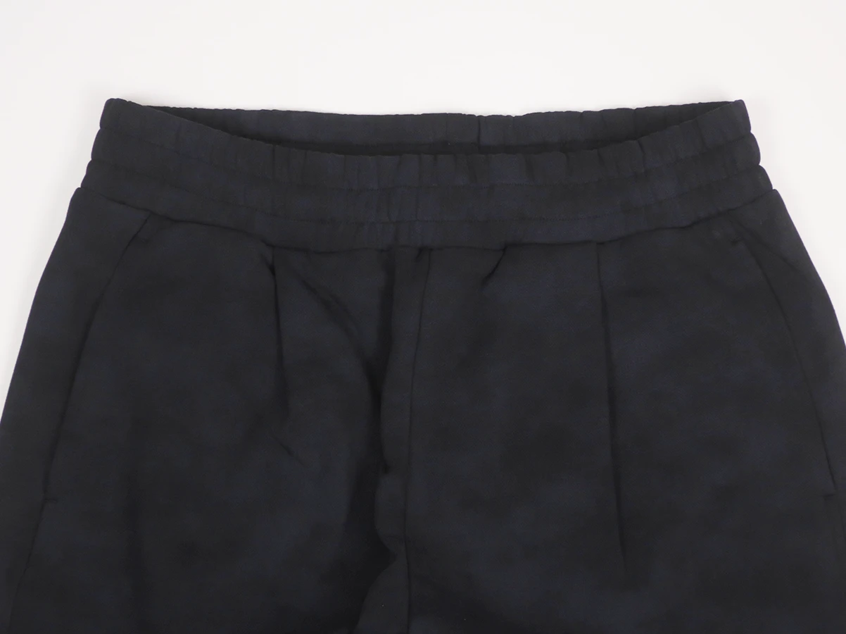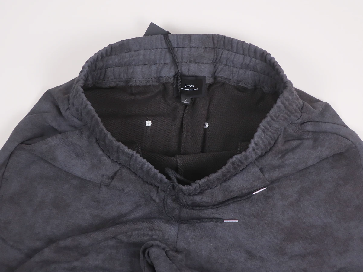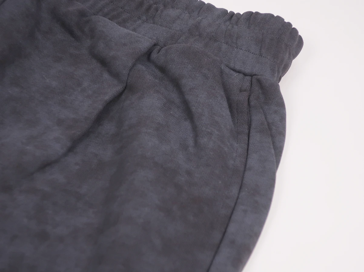 プリントによってユーズド加工のような表情を加えた裏毛素材を使用したスウェットパンツ。