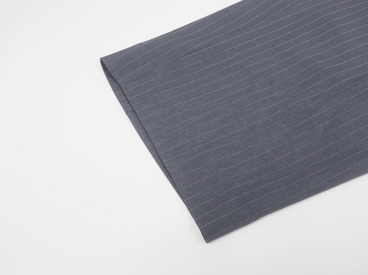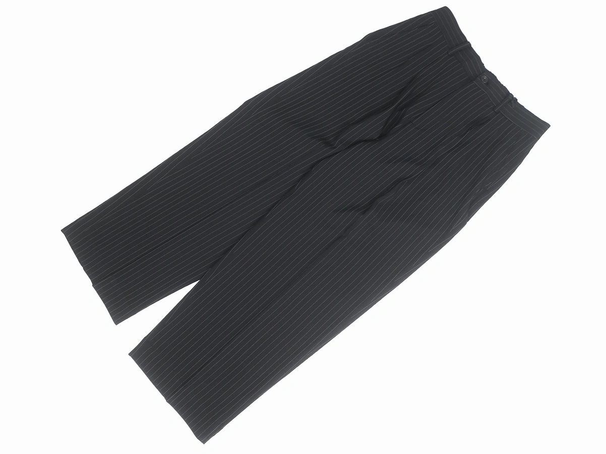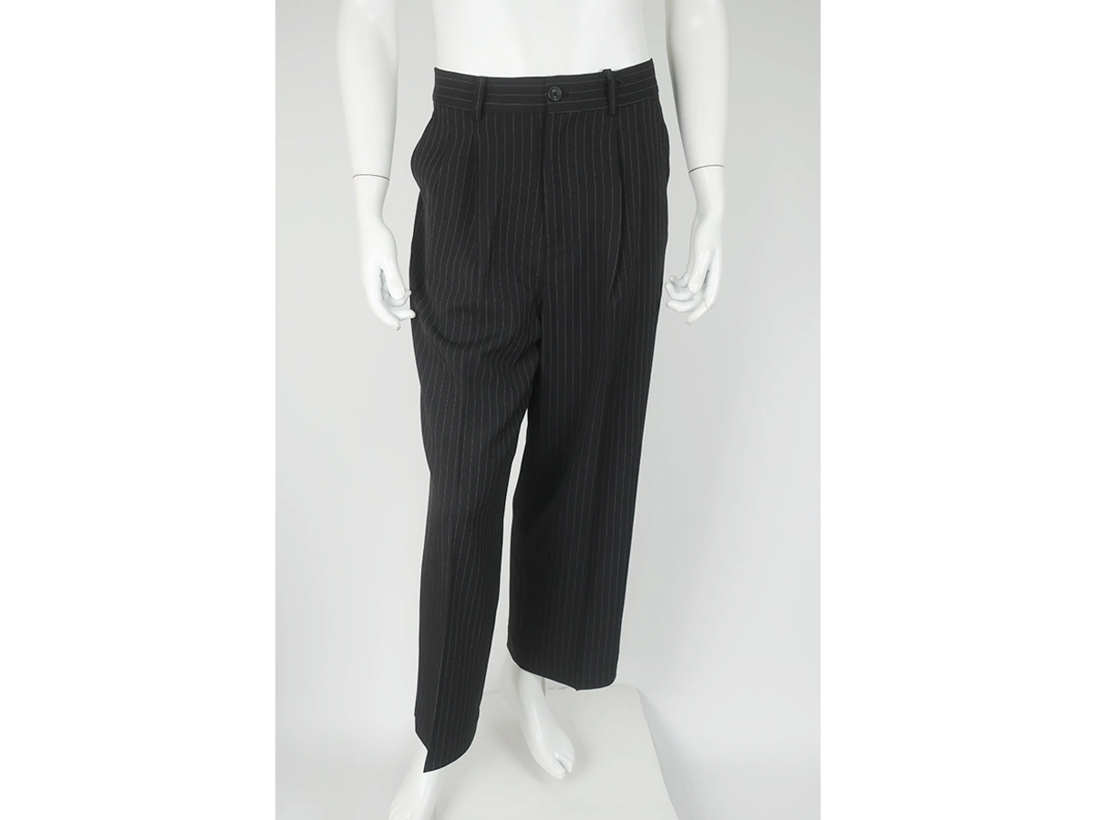 テックツイル素材を使用した、ピンストライプ柄のツータックスラックス。ポリエステル・レーヨン・ポリウレタンの混紡生地は程よいハリと落ち感に加え、ストレッチ性も備えた快適な穿き心地。クラシックなピンストライプに現代的な機能素材を掛け合わせた一本です。