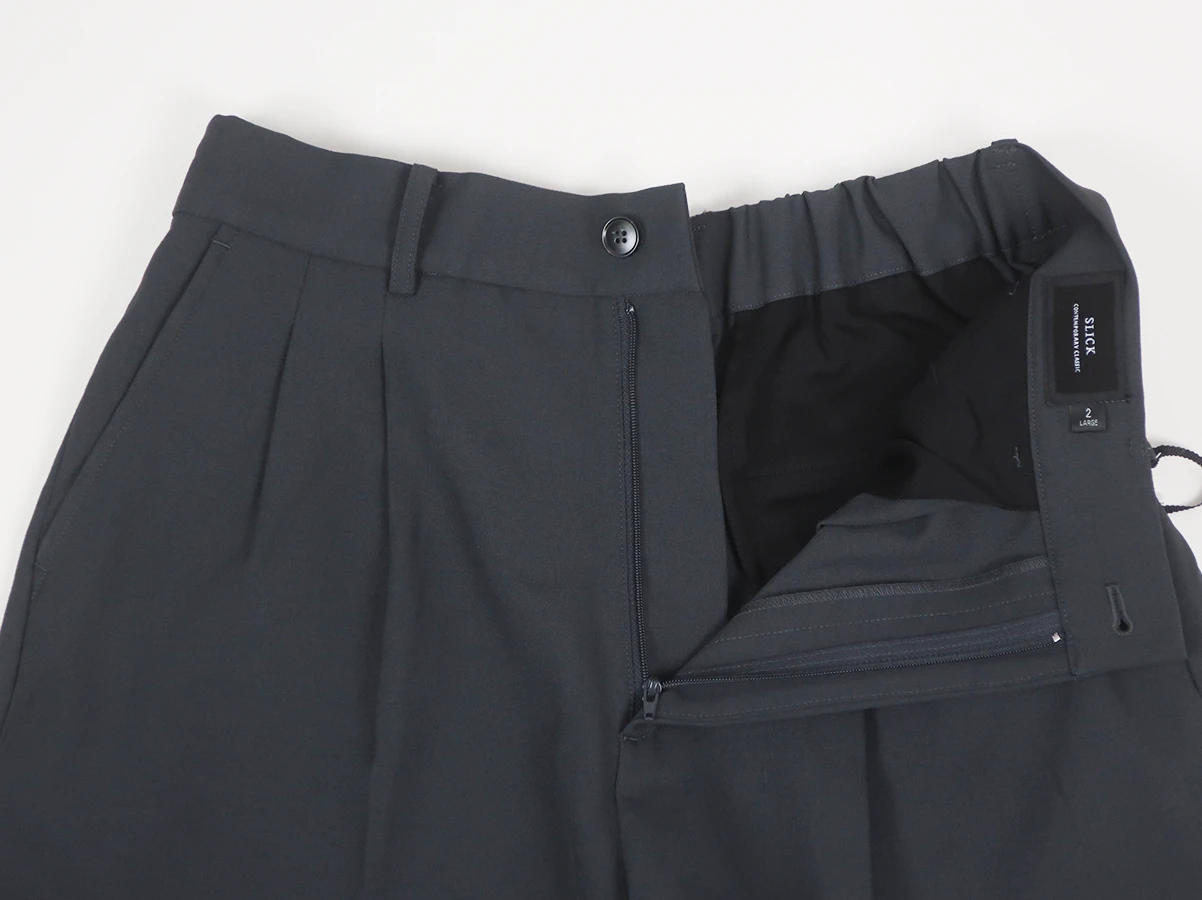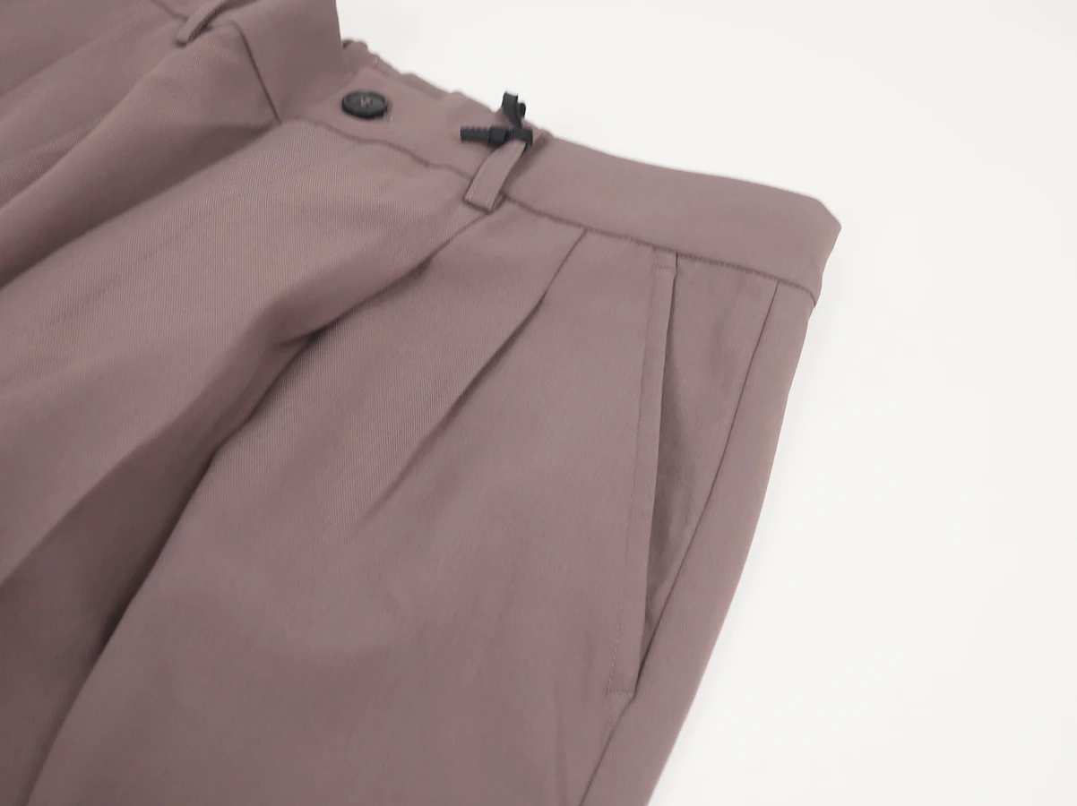 マットな質感のポリエステル糸を使用したテックツイルの2タックスラックス。