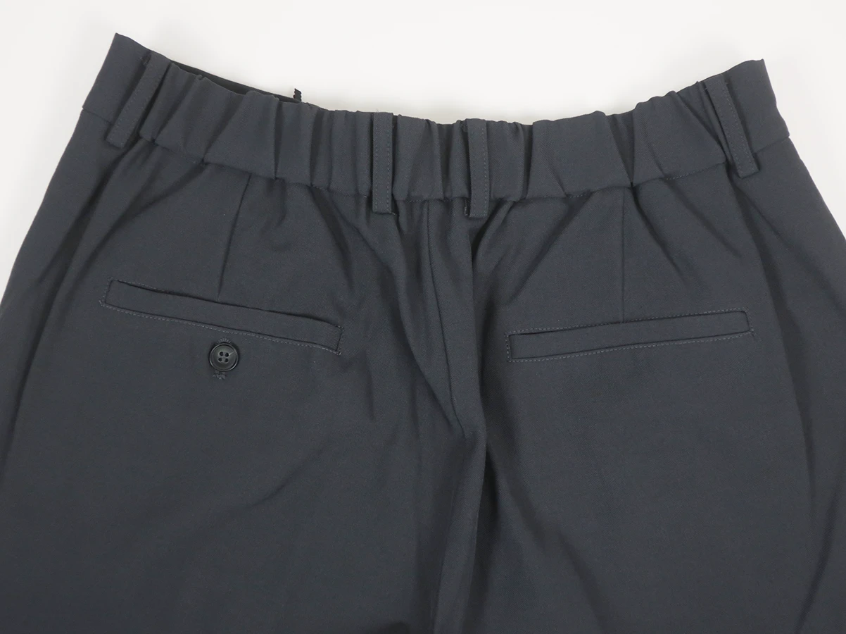 ウエストの後ろ部分にはゴムを入れ、快適なフィット感とリラックスした穿き心地を実現。