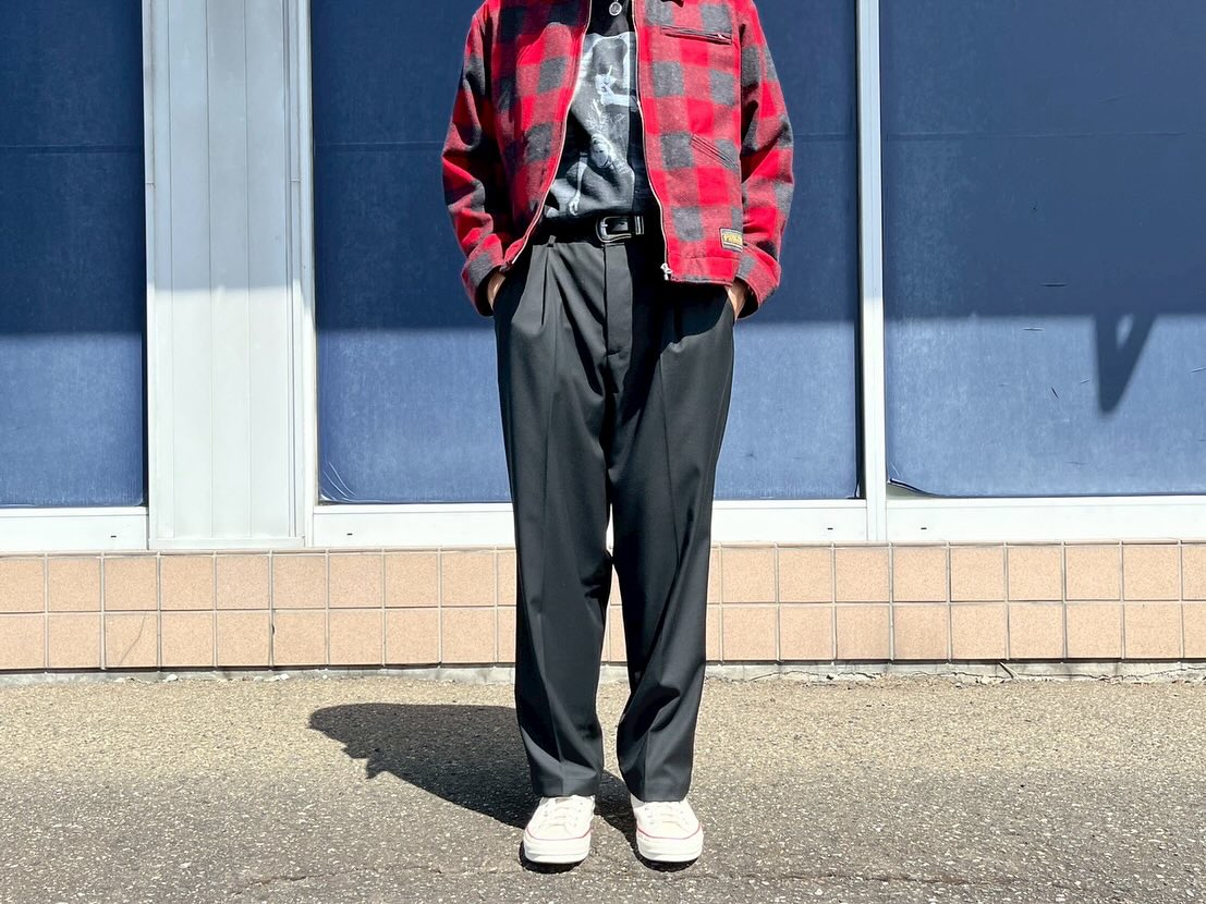 TRギャバストレッチ生地を使用したワンタックのテーパードスラックス。スーツ地に使われる高級感のあるツイル組織で、程よい厚みとストレッチ性を兼ね備えた一着。