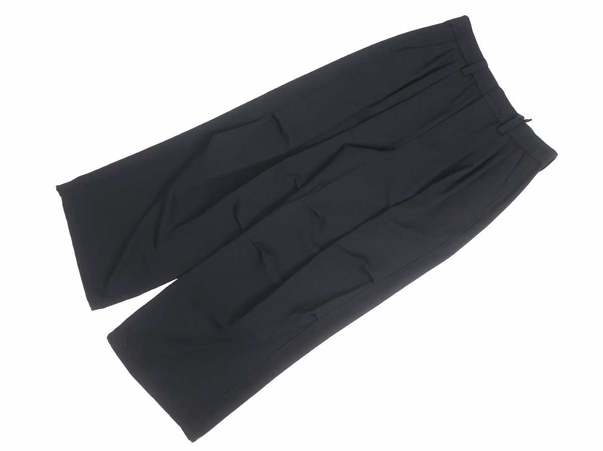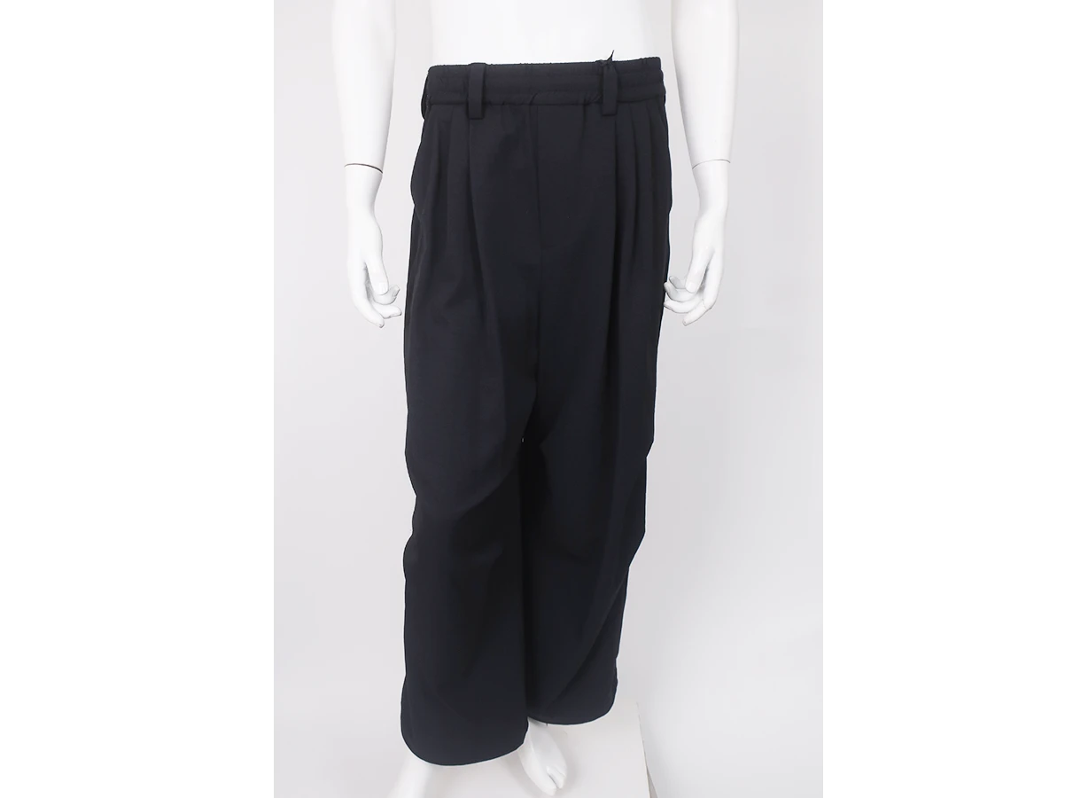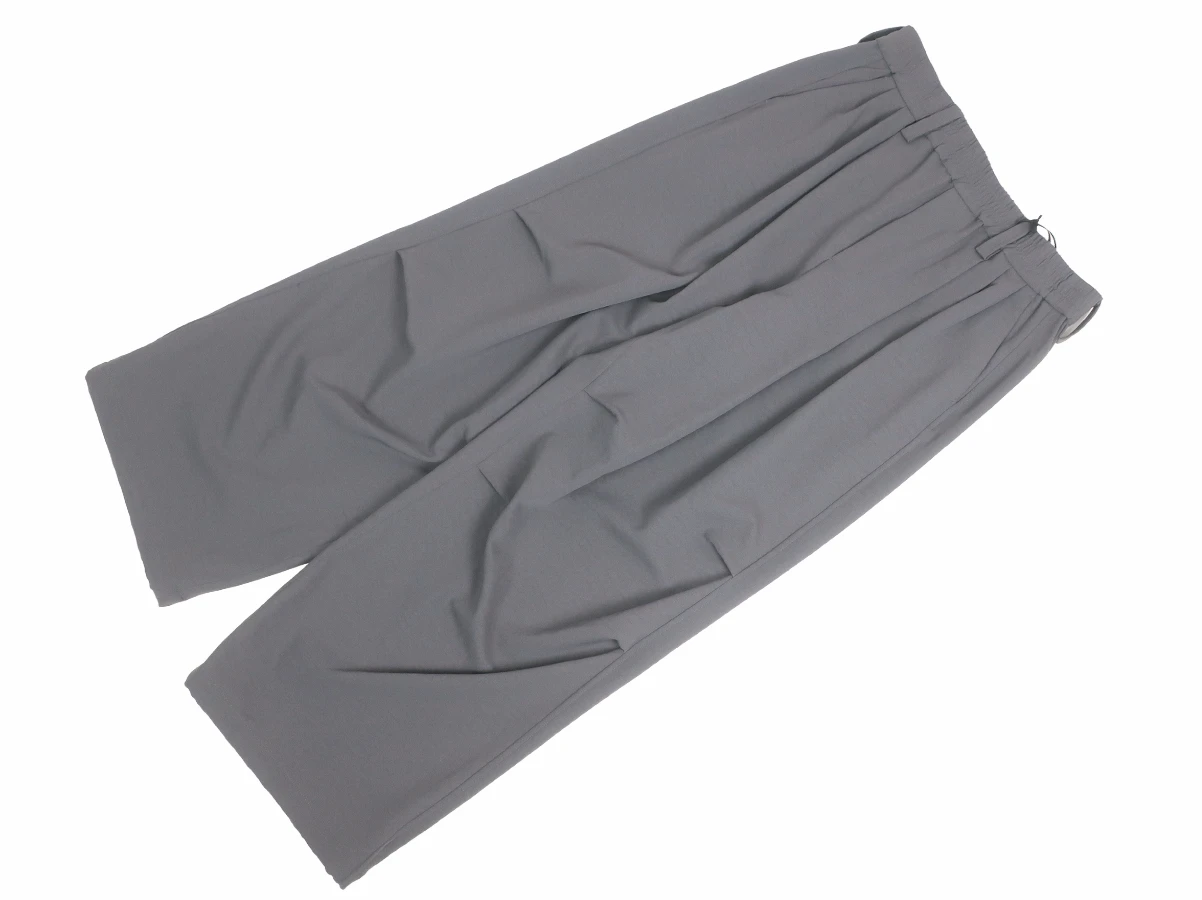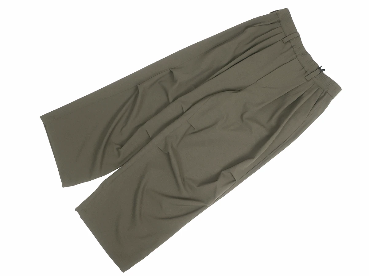 ウエスト部分はベルトループとゴム仕様。フロントに3タック、膝部分に2タックを施すことで生まれる独特なゆったりとしたワイドバルーンシルエットが特徴で、ストレスフリーな着心地を実現。裾裏にはドローコードを配備しており、絞ることでシルエットの変化を楽しめるデザイン。