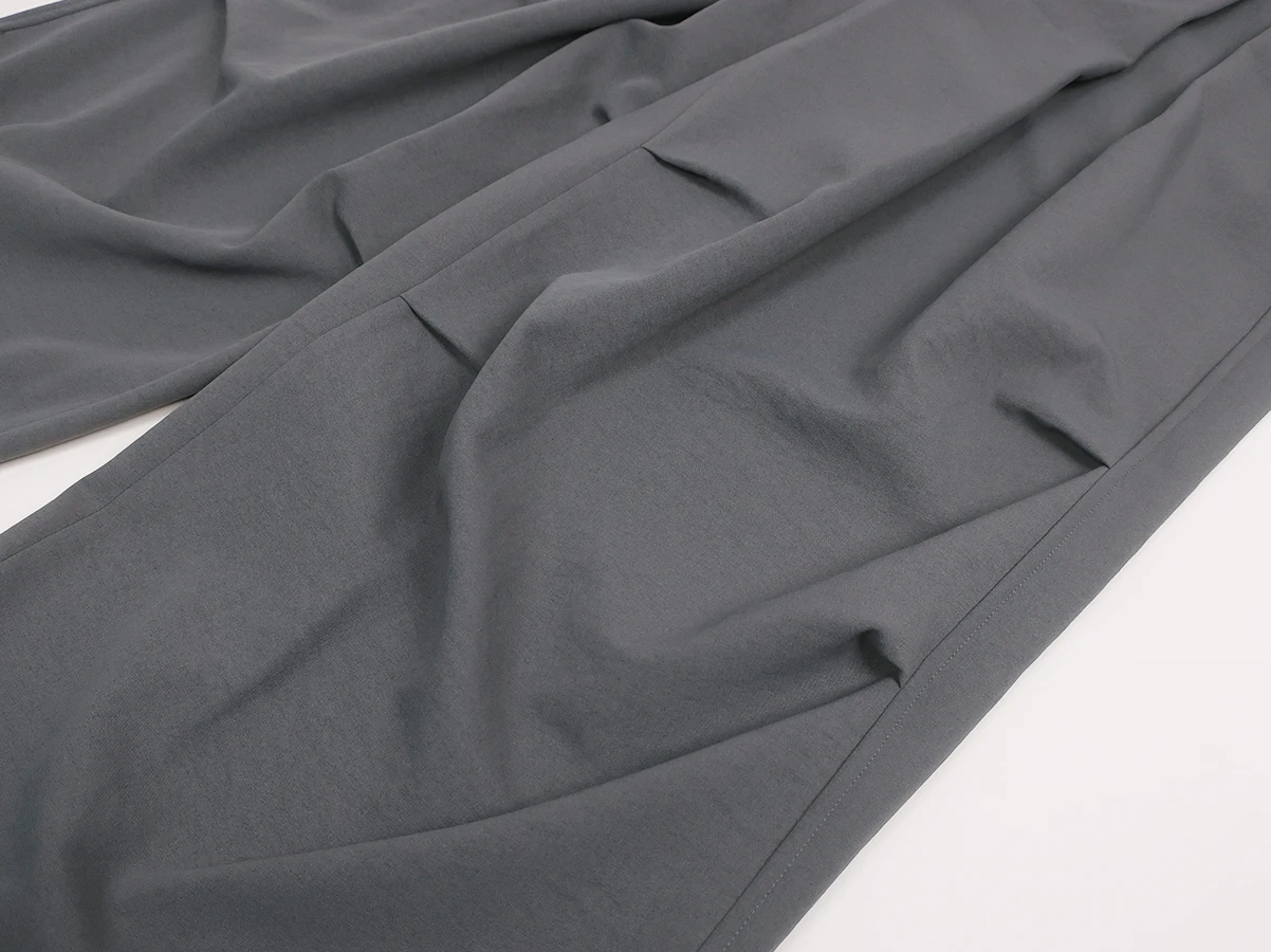 ウォッシャブル2WAYストレッチの機能素材をベースに程よい肉感としなやかさを兼ね備え、上品な表情を持ちながらも軽量で扱いやすい質感が特徴。ポリエステルによるシワになりにくい特性とナイロンの耐久性、テンセルがもたらすソフトなタッチが合わさり快適さと機能性を両立。