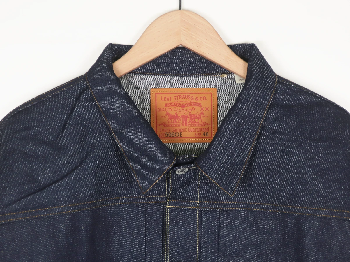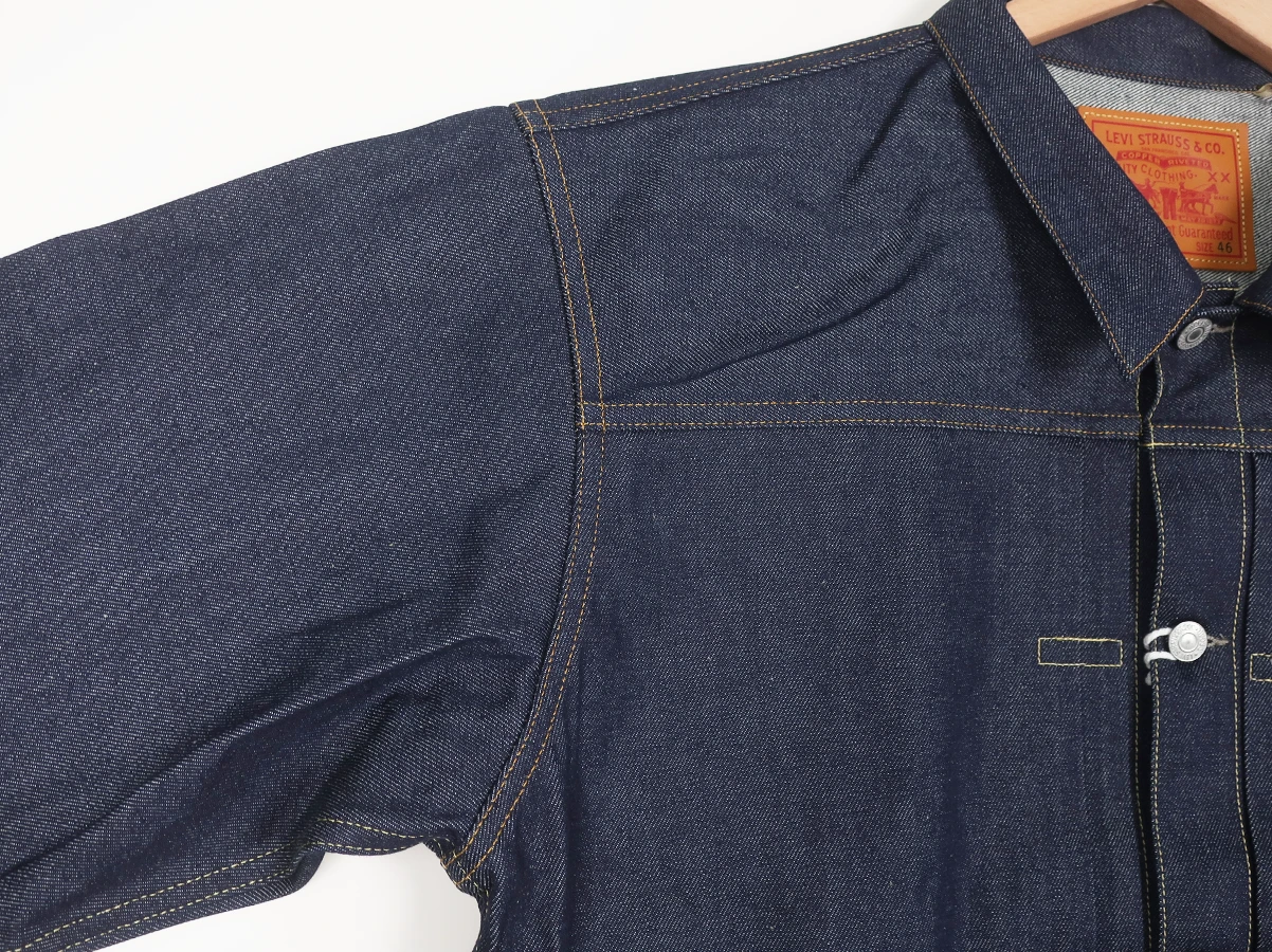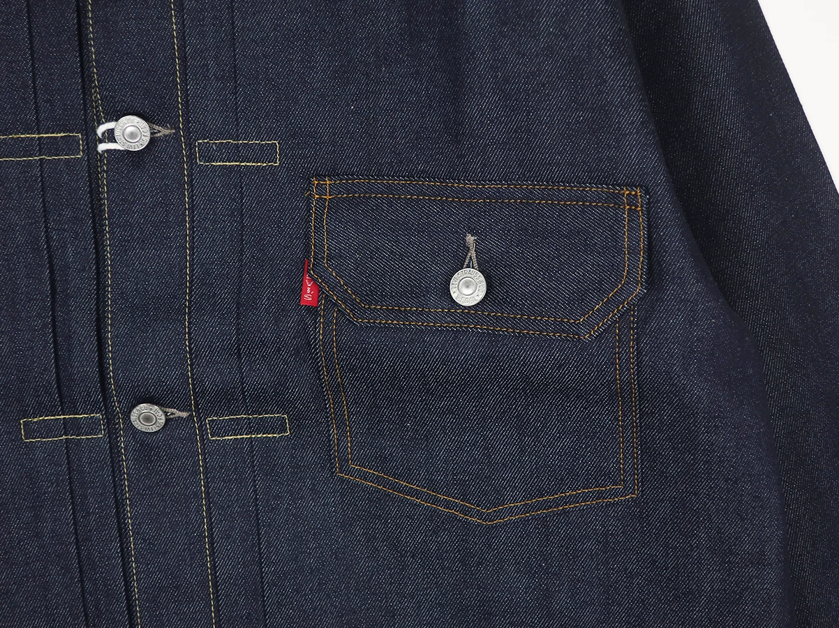 オリジナルに忠実に、このジャケットには、ダブルのプリーツが入った前面、シングルの胸ポケット、露出した銅のリベット、調節可能なフィットのための銅製のプロングが付いたシンチバックなど、特徴的なディテールが施されています。1936年は、Big “E” Red Tab™ が Levi’s® 製品に追加された最初の年でもあります。