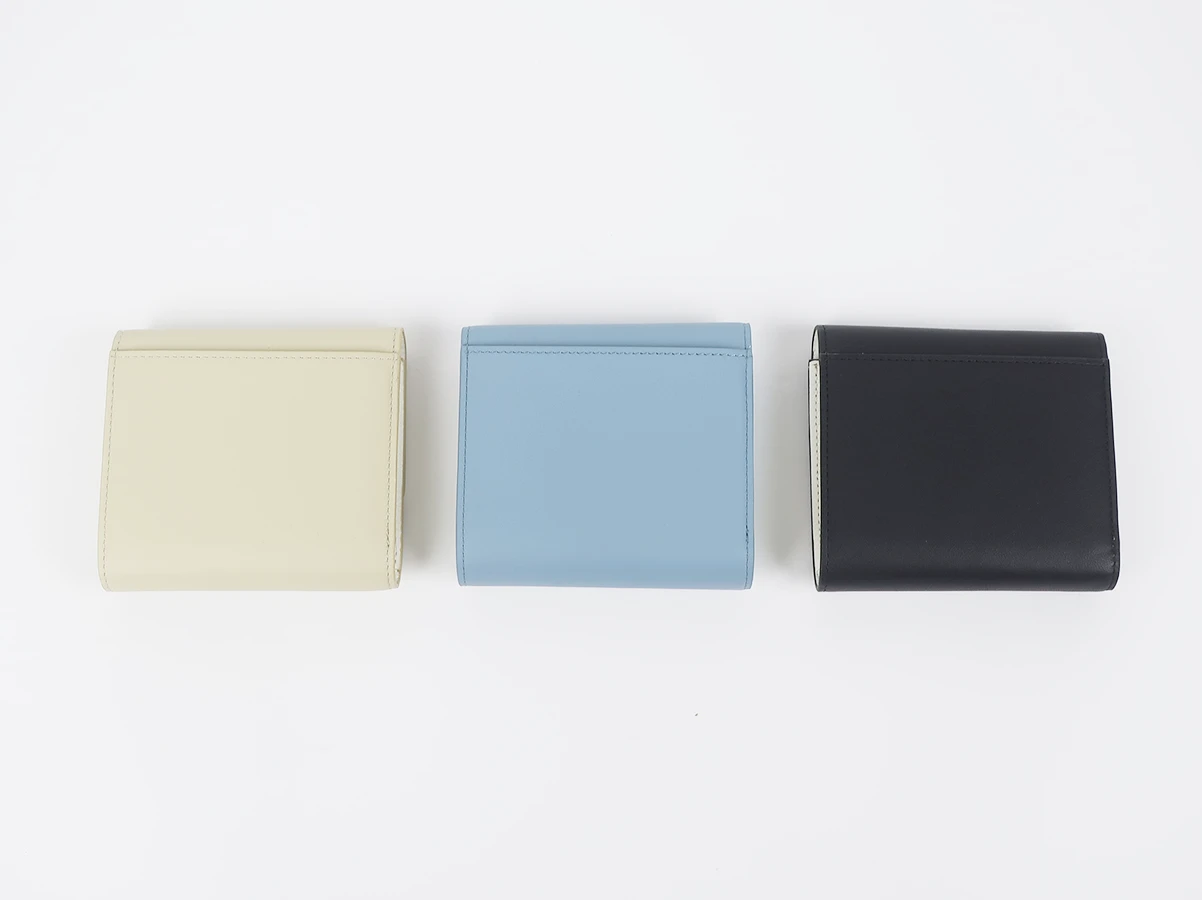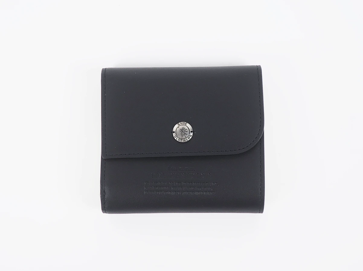 上質なカウレザーを使用した二つ折りウォレット。無駄のないシンプルなデザインながらも、素材の質感と仕立ての美しさが際立つ一品です。