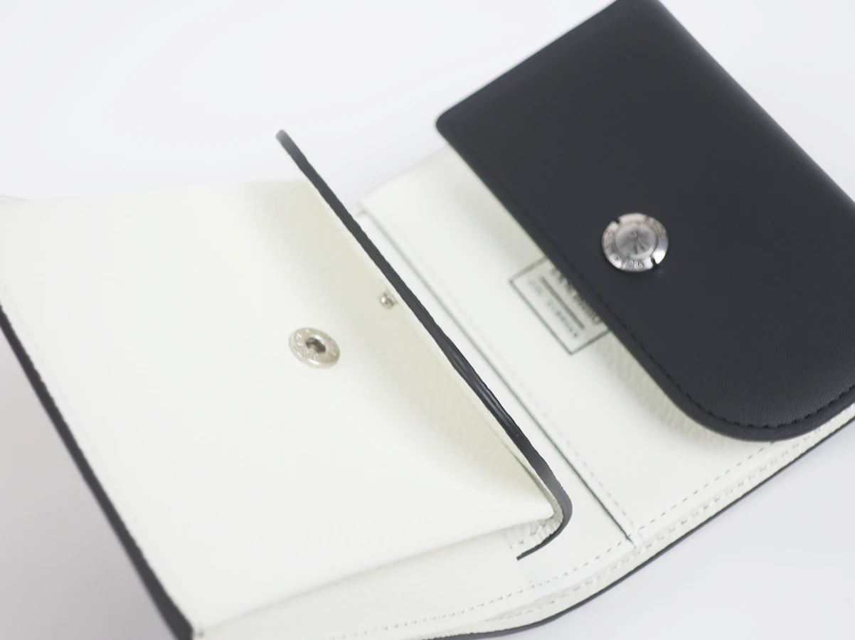 コンパクトなサイズ感ながら、カード・紙幣・コインをバランスよく収納可能。内部の仕切り構造が見やすく取り出しやすい設計で、実用性にも優れています。滑らかで手に馴染むレザーは、使い込むほどに深みのある風合いへと変化。Maison MIHARA YASUHIROらしいミニマルで上品な仕上がり。
