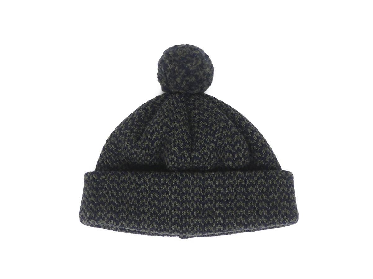ACYを象徴する“矢印(YAJIRUSHI)”ロゴをあしらったビーニー。フロントの刺繍と、トップにあしらわれたボンボンが印象的なデザインです。