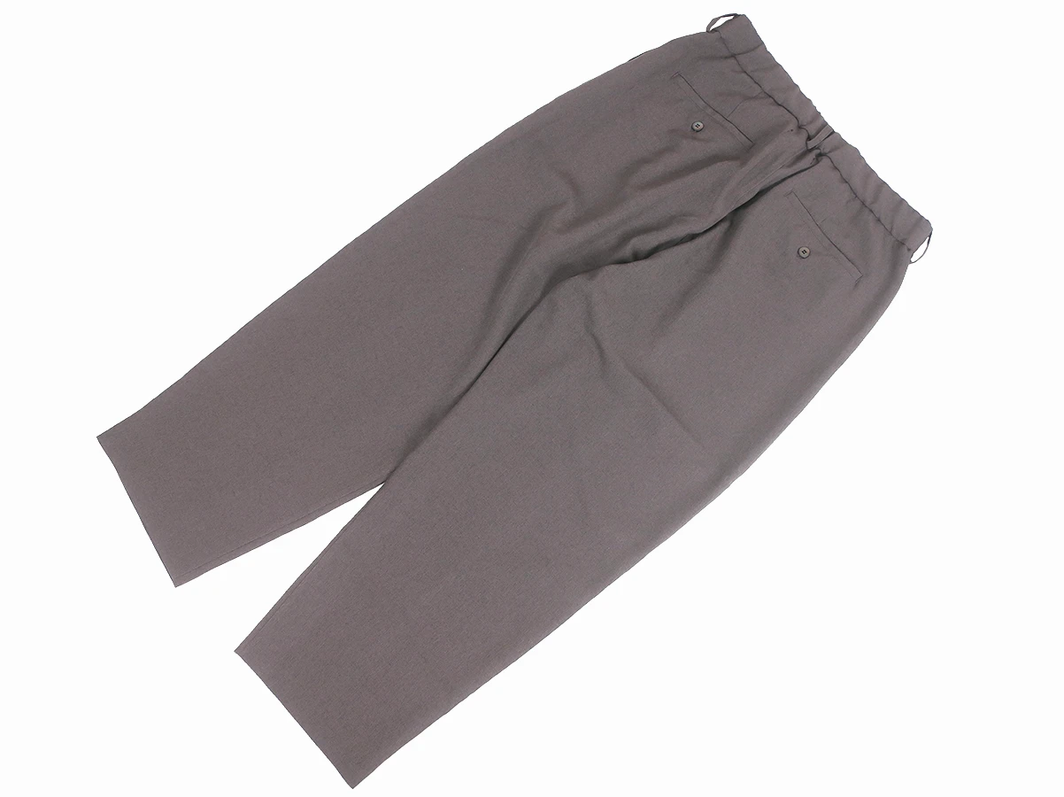 麻の様な見た目と肌触りで清涼感があり、快適な着心地を実現します。ウエスト箇所にはゴムを縫い込みドローコードを配したイージーパンツ仕様。