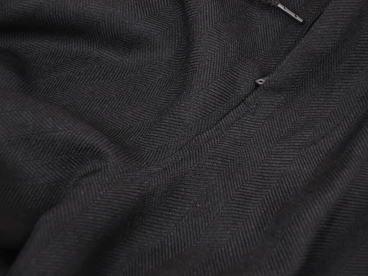 ウールのような質感と程よい光沢感があり、上品な見た目の印象が特徴です。ポリエステルなので乾きやすく、またシワにもなりにくいため、ウールに比べて圧倒的に扱いやすいのが魅力です。