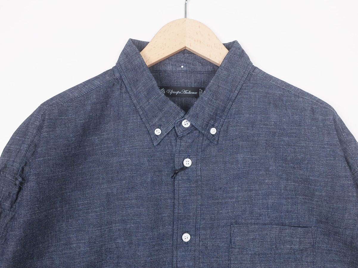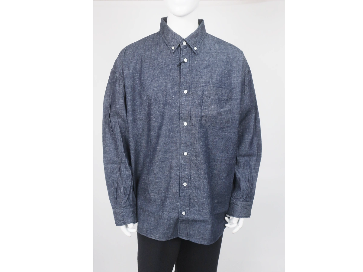 【Upscape Audience アップスケープオーディエンス】「備中備後」6オンス セルヴィッチ白耳デニム釦ダウン ボクシーAライン長袖シャツ
