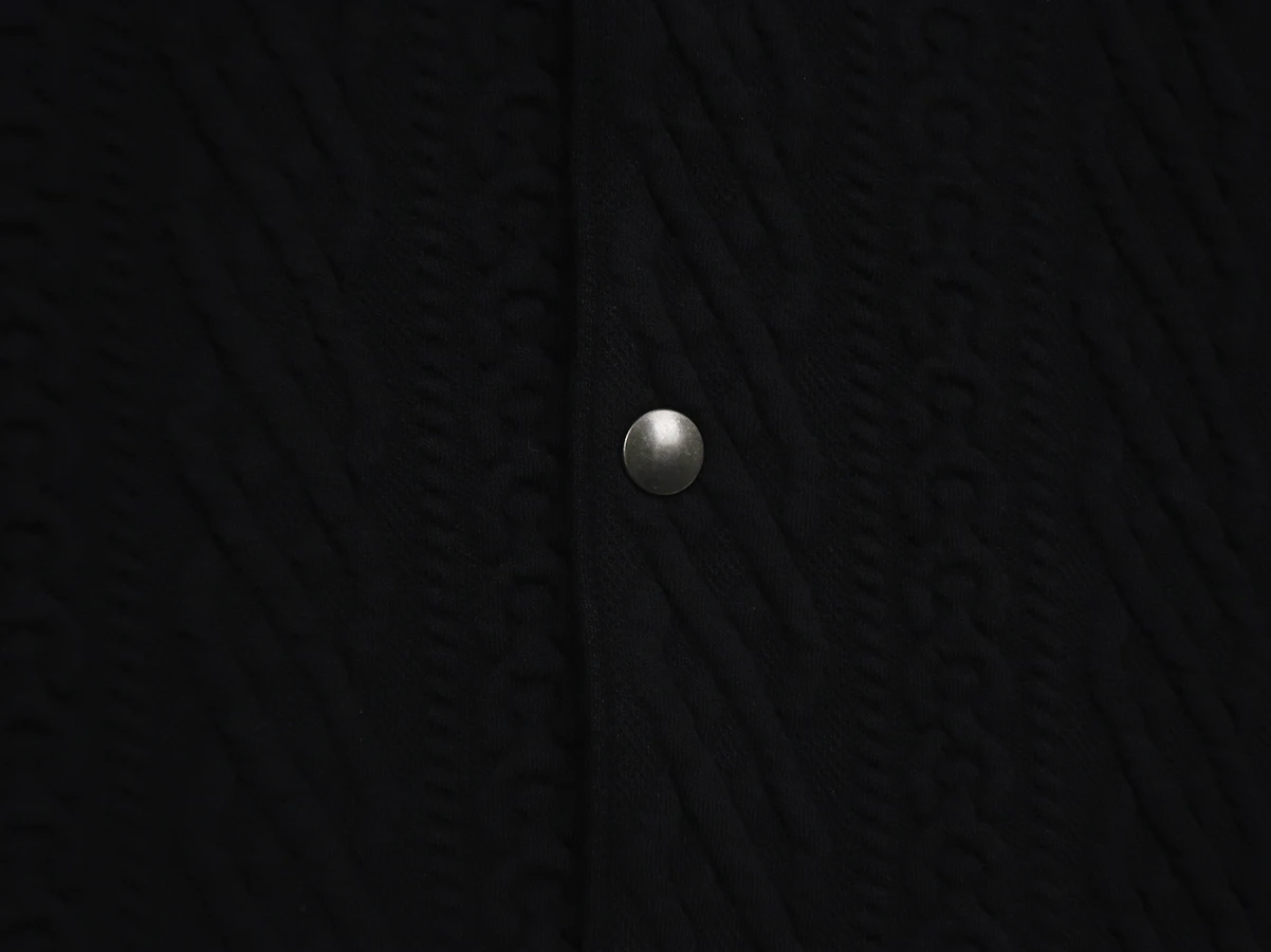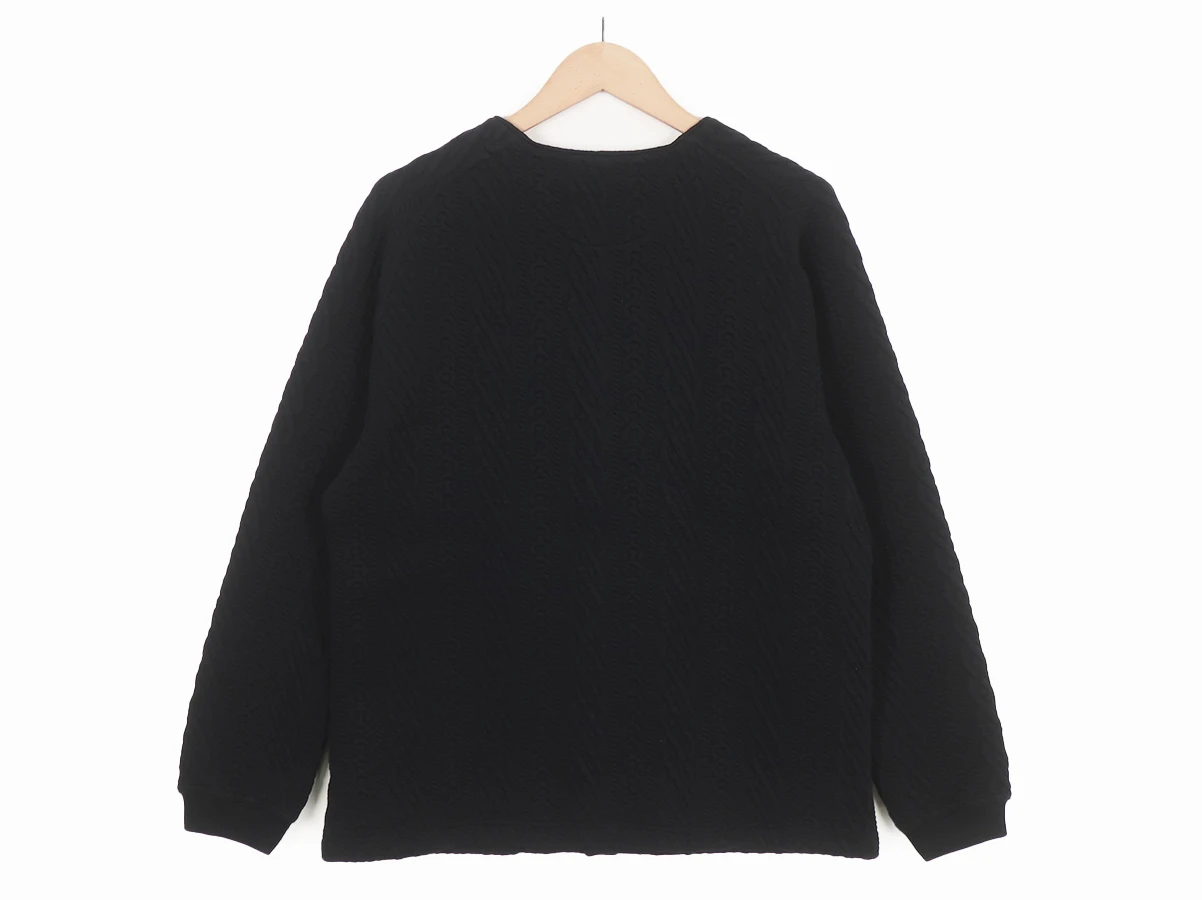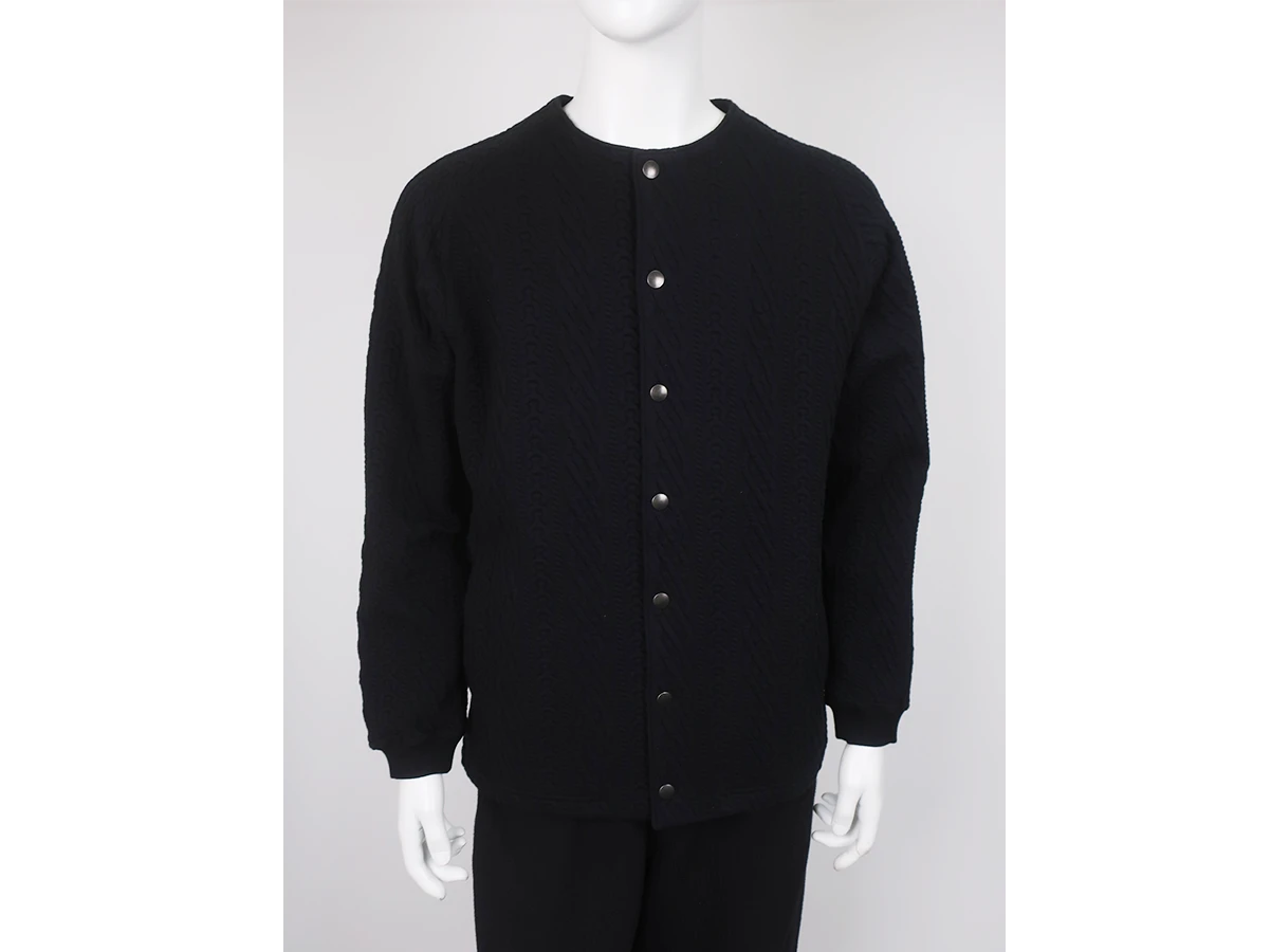 コットンキルトシリーズのノーカラースナップジャケット。袖口にリブを配しております。