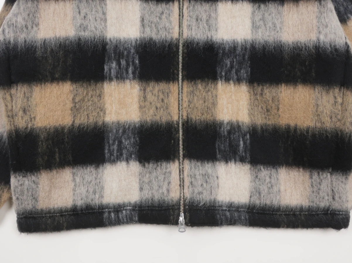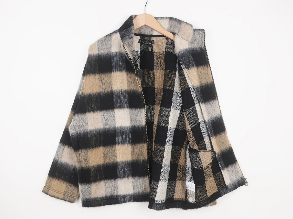 【UPSCAPE AUDIENCE アップスケープオーディエンス】ECOLANA(エコローナ)シャギーチェック スタンドZIPジャケット