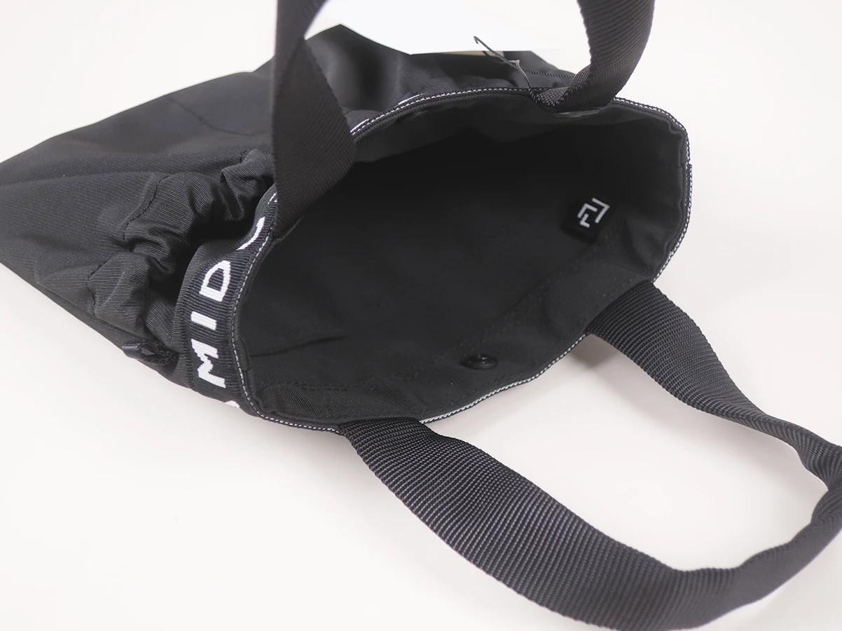フロントポケットにスマートフォンと350mlサイズのペットボトルが収納出来るミニトートバッグ。内装に臭気を軽減する無機物微粒子と銀成分を、特殊な樹脂フィルムに練り込み、繊維にラミネートしたDEOSUNNYⓇデオドラントネームタグ付き。