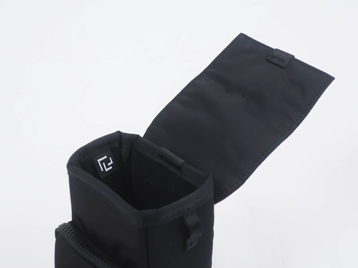 カメラの収納部分はマグネット開閉仕様により、撮りたい瞬間にスムーズな出し入れが可能。前面にはジッパーポケットを備え、SDカードなどのメディア類や小物を収納できます。