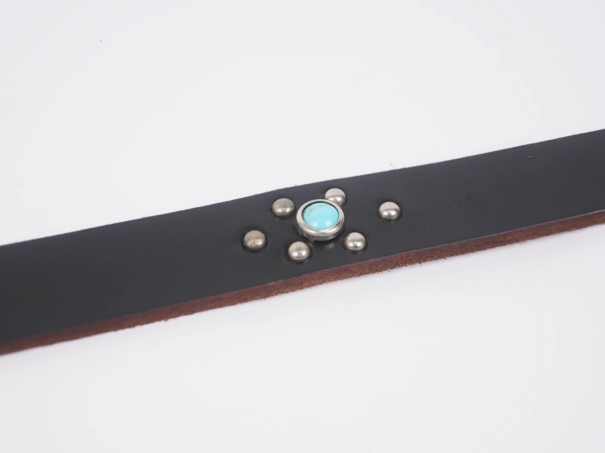 1inch幅のベースに人気のターコイズを組み合わせた定番モチーフのスタッズワークでシンプルに仕上げました。