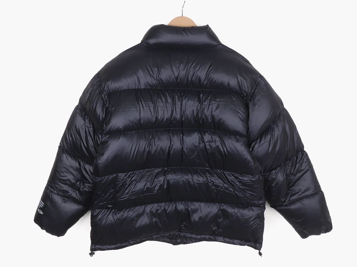 光沢感のあるナイロンシェルを使用し、ボリュームのあるシルエットながらも軽快な着心地が魅力です。身幅・アームにゆとりを持たせた設計で、スウェットやフーディの上からもスムーズにレイヤードできる仕様。