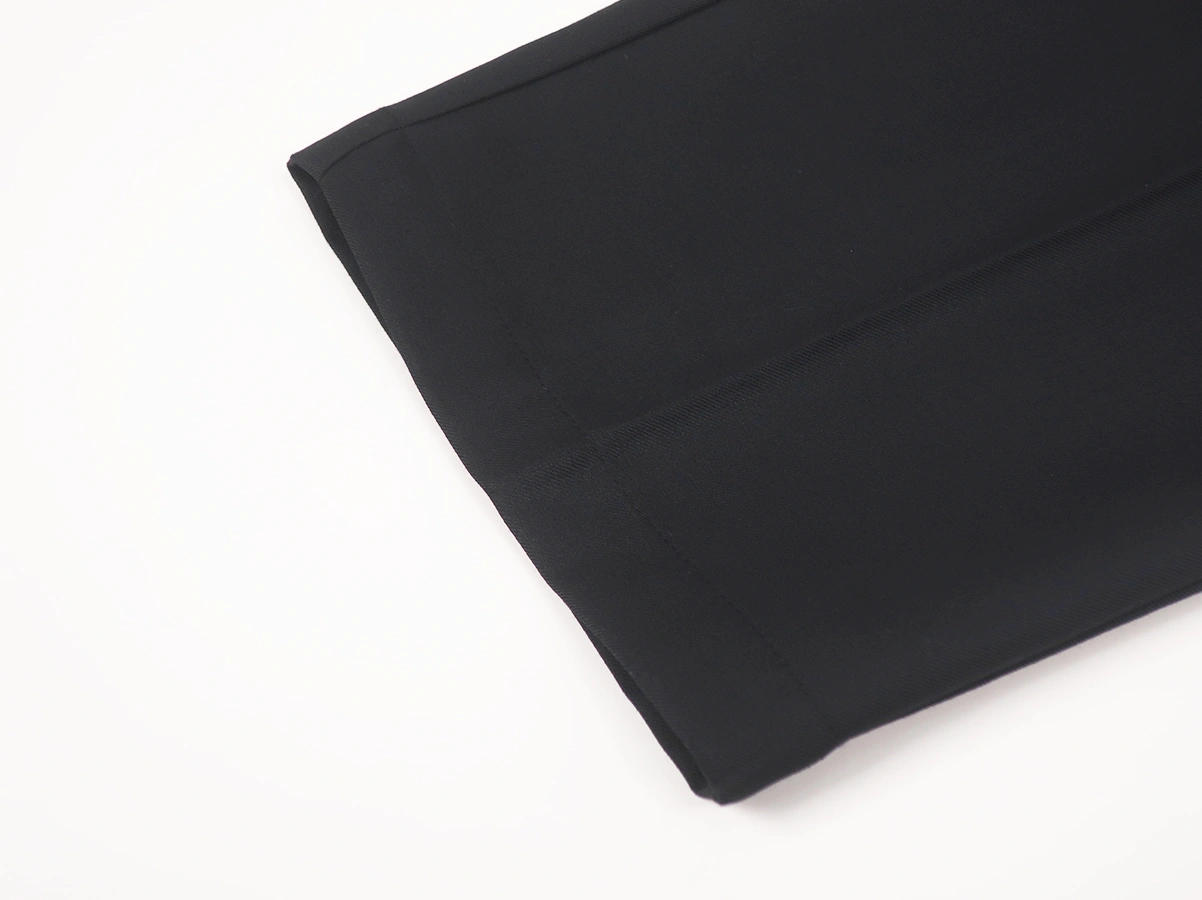 ウール50%・ポリエステル50%のブレンド素材を使用。しっかりとした生地感のパンツ。