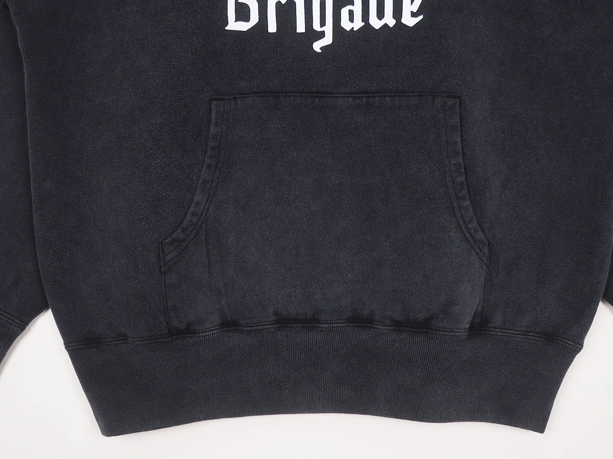 クラシックなカレッジロゴをフロントに配したプルオーバーフーディ。