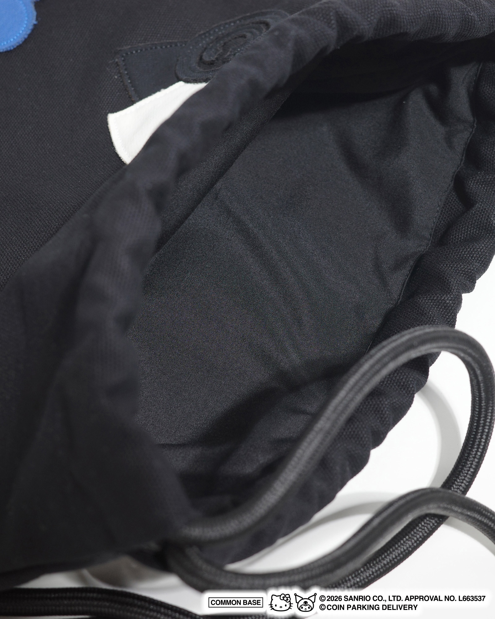 コインパーキングデリバリーとサンリオキャラクターズによるスペシャルなコラボレーション。フロントにパッチワークと刺繍を配置したナップサックです。