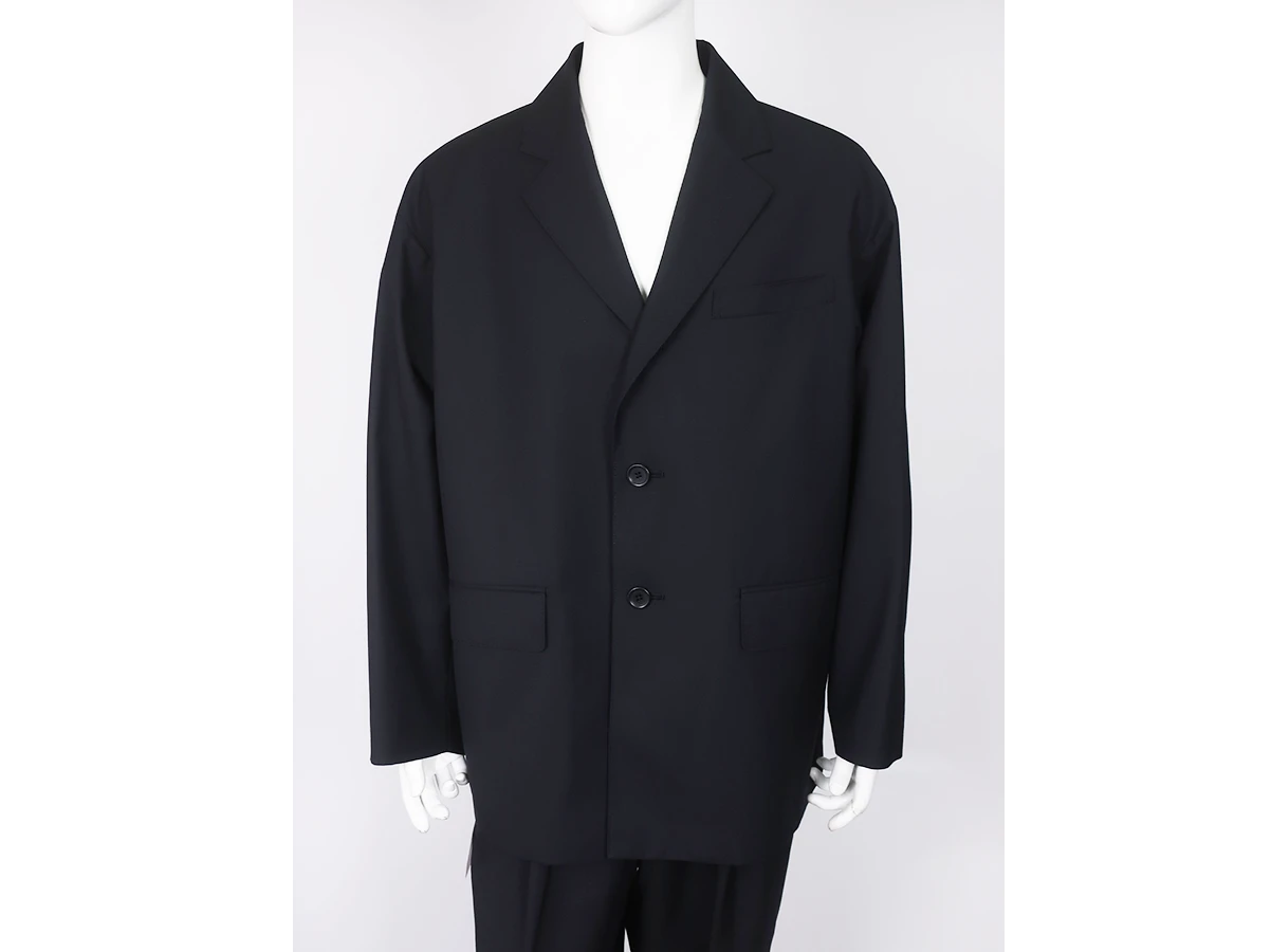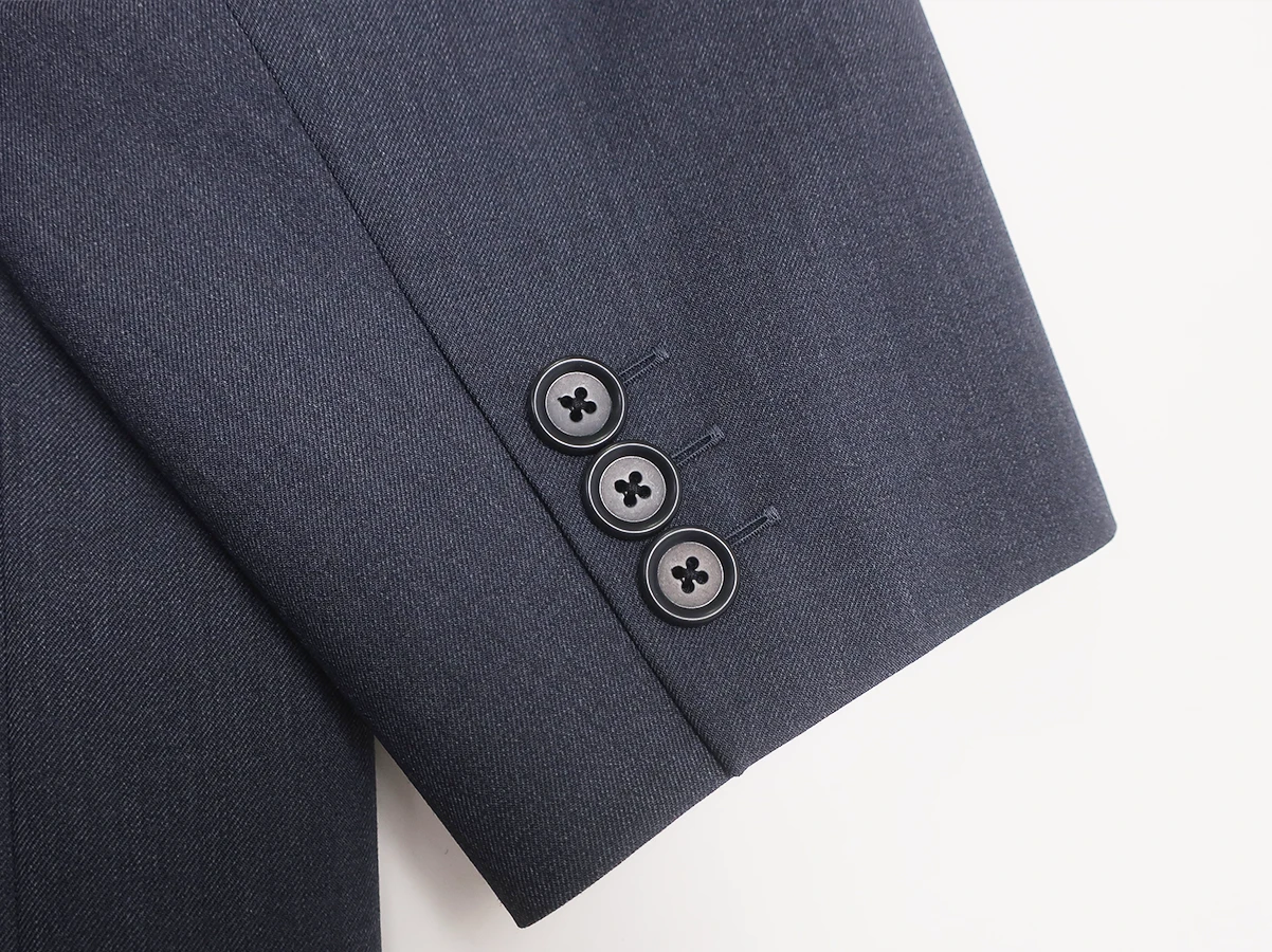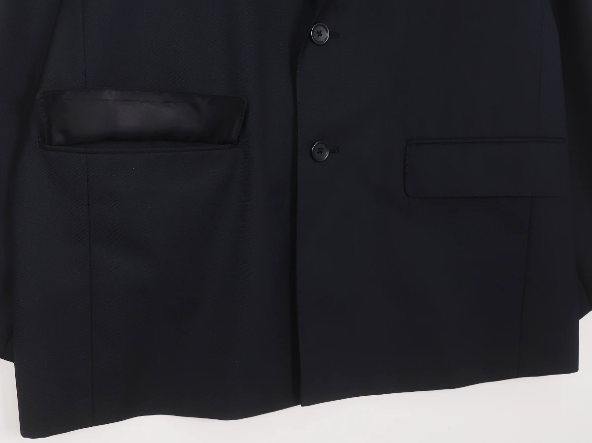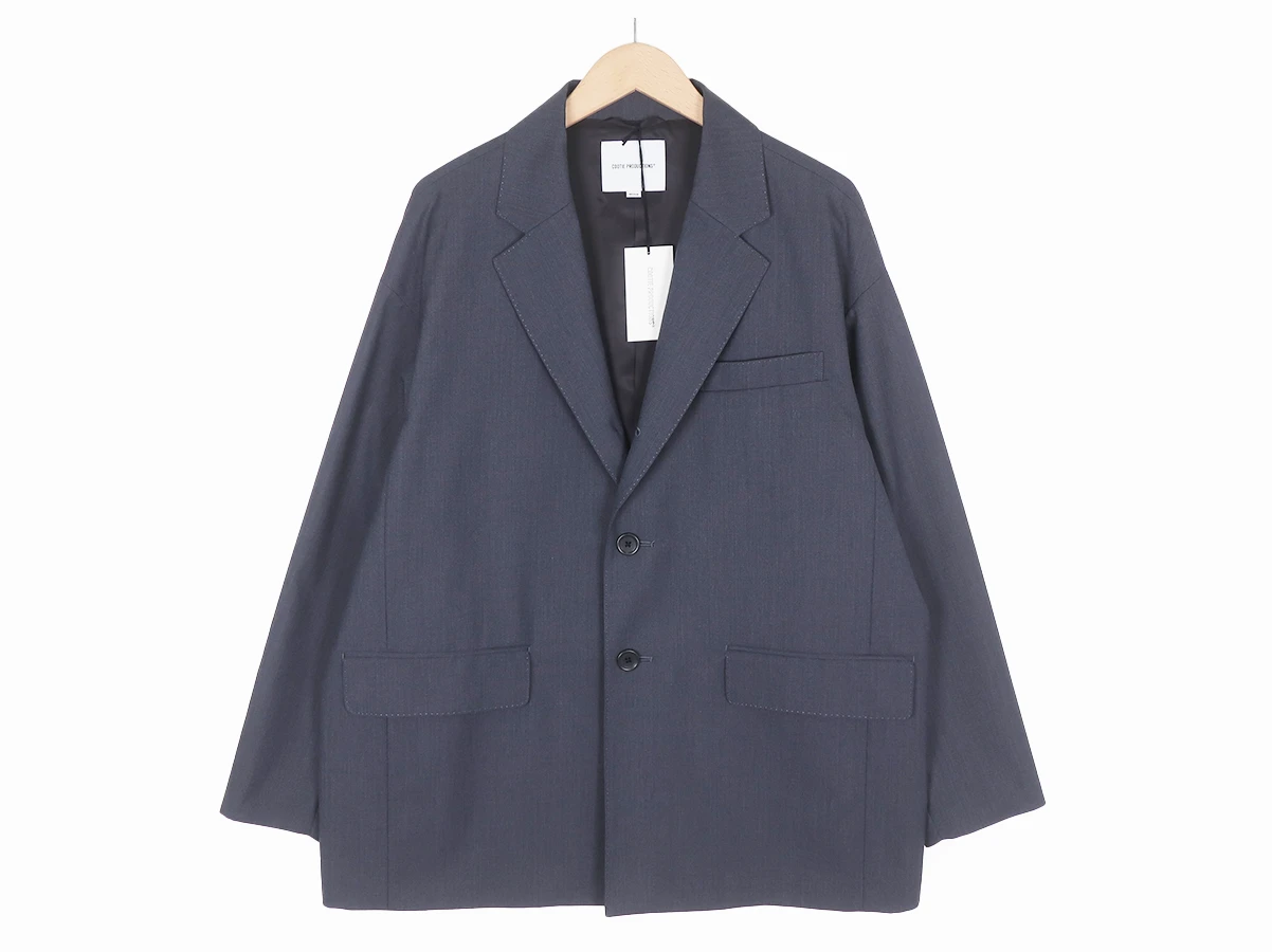 ウールとポリエステルの混紡糸を高密度に織り上げた T/Wサキソニー生地 を使用したシングルジャケット。