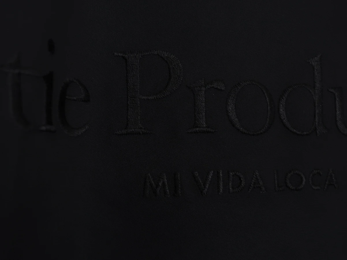 ややコンパクトな着丈に対し、身幅を広めに取ったワイドシルエット。背面に大きく同色のブランド刺繍。
