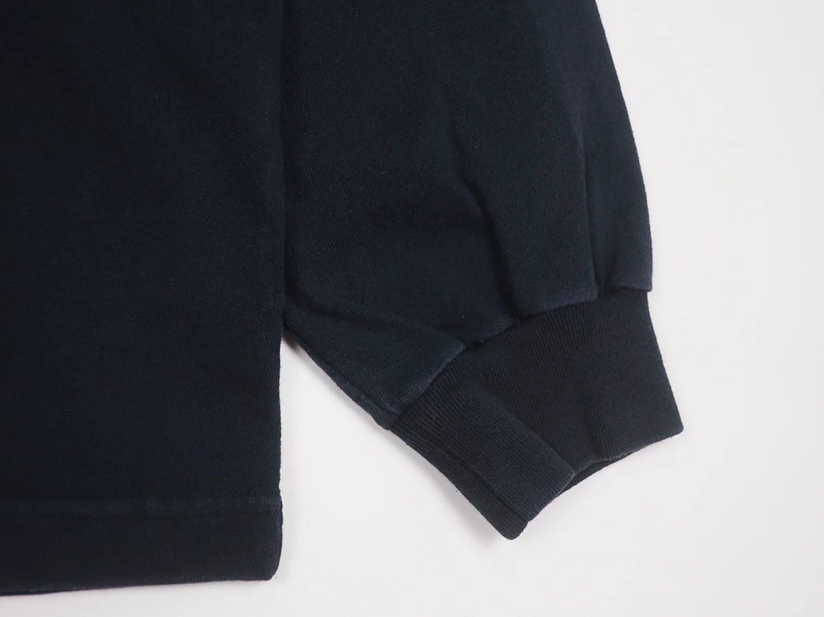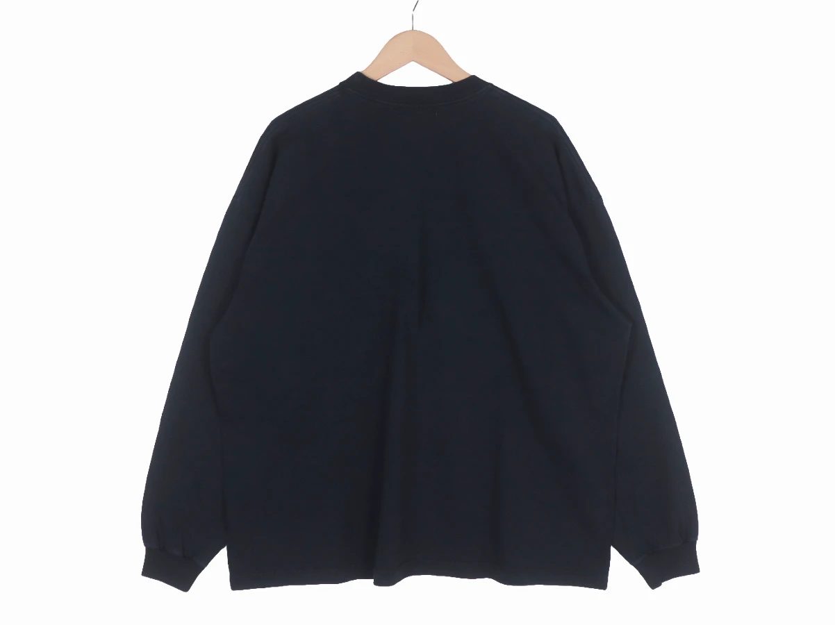 空紡糸で編み上げたドライなタッチが特徴の天竺を使用した長袖Tシャツ。製品加工により着古したような雰囲気に仕上げた。ワイドシルエット。