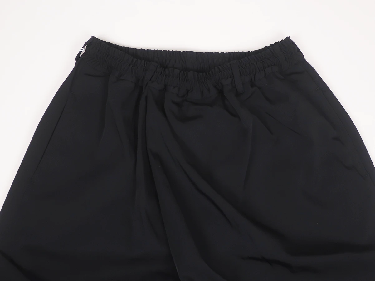 ナイロン×ウールで作成したツイル生地を使用した独特の鈍い光沢のある表情とドレープ、膨らみを持つイージートラウザーです。