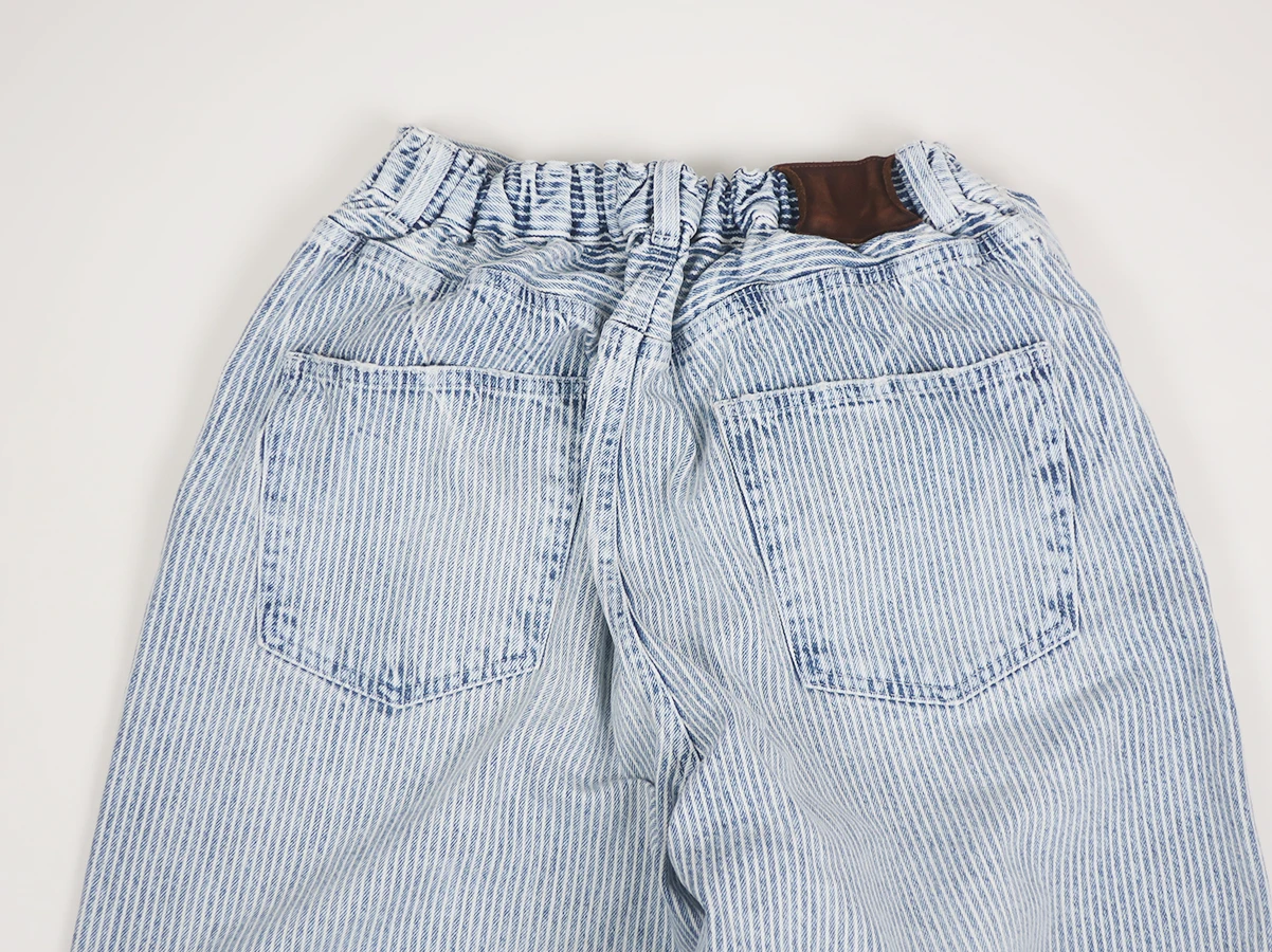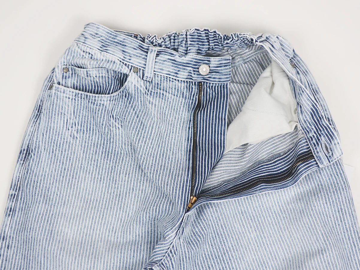 大きめインチの5ポケットパンツに後ろウエストのみゴムを入れ、