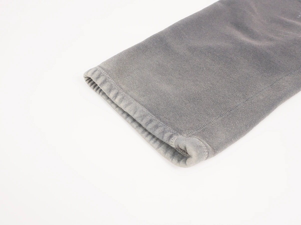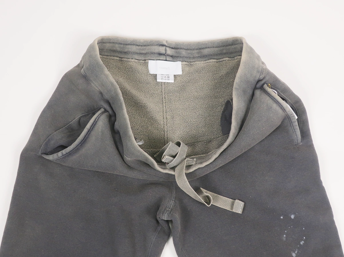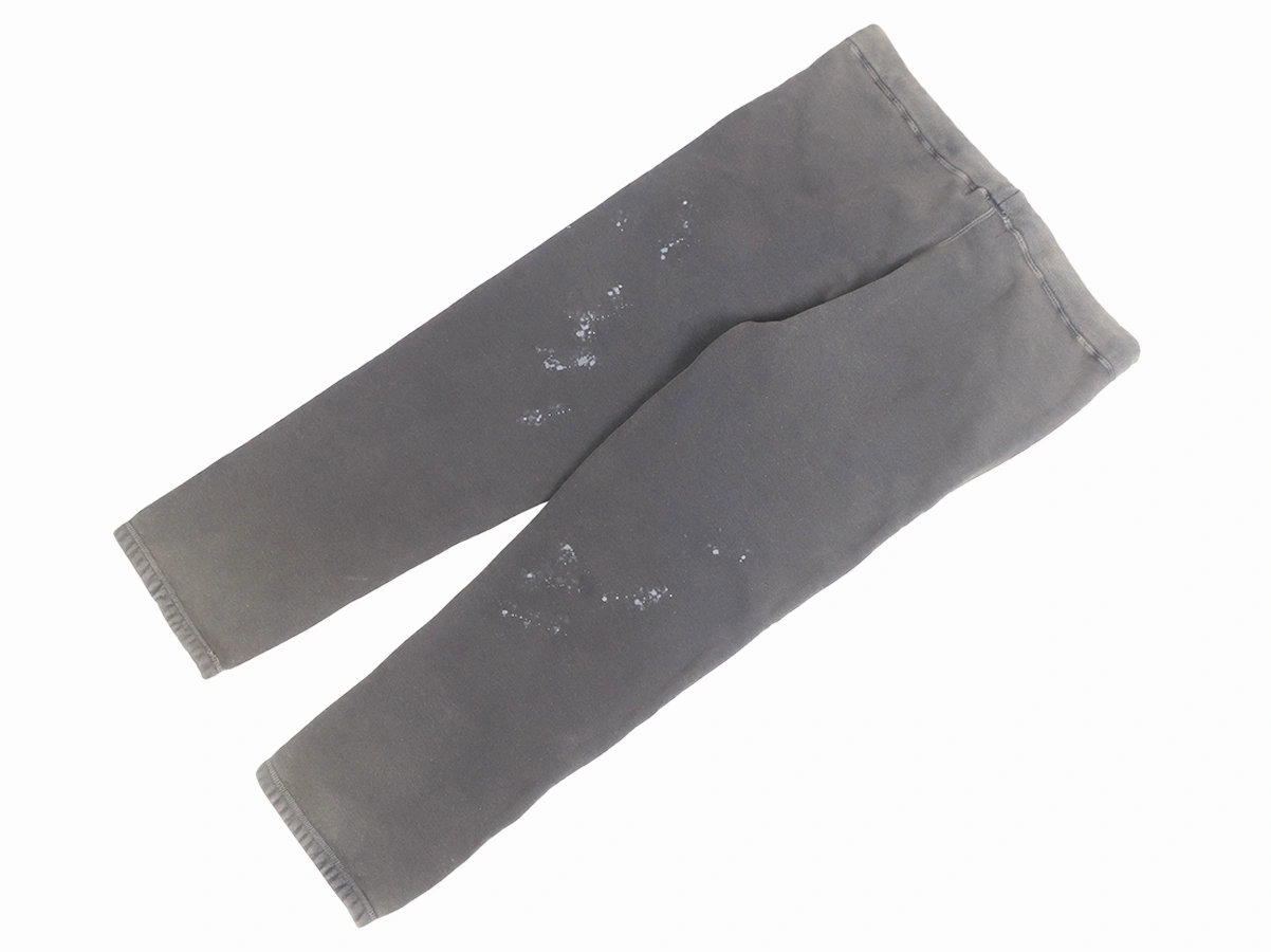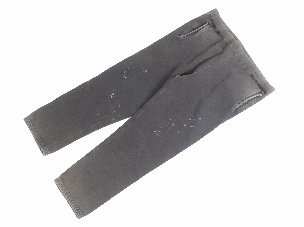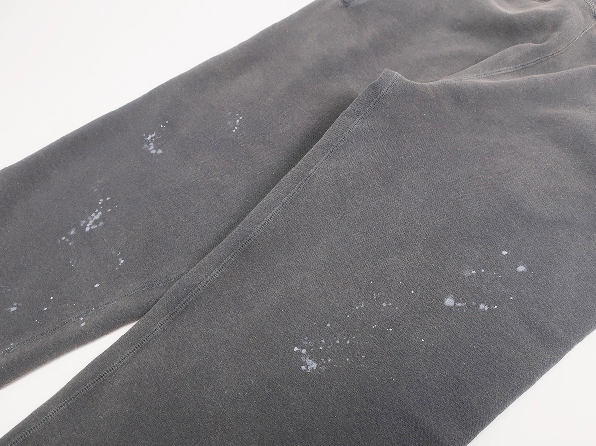 全体に強く加工を施したスウェットパンツ。洗い加工は、生地の凹凸部分のアタリを強調させ同時に脱色させる新しい加工技術。日焼けして着古したような激しい加工ながらも垢抜けた印象。