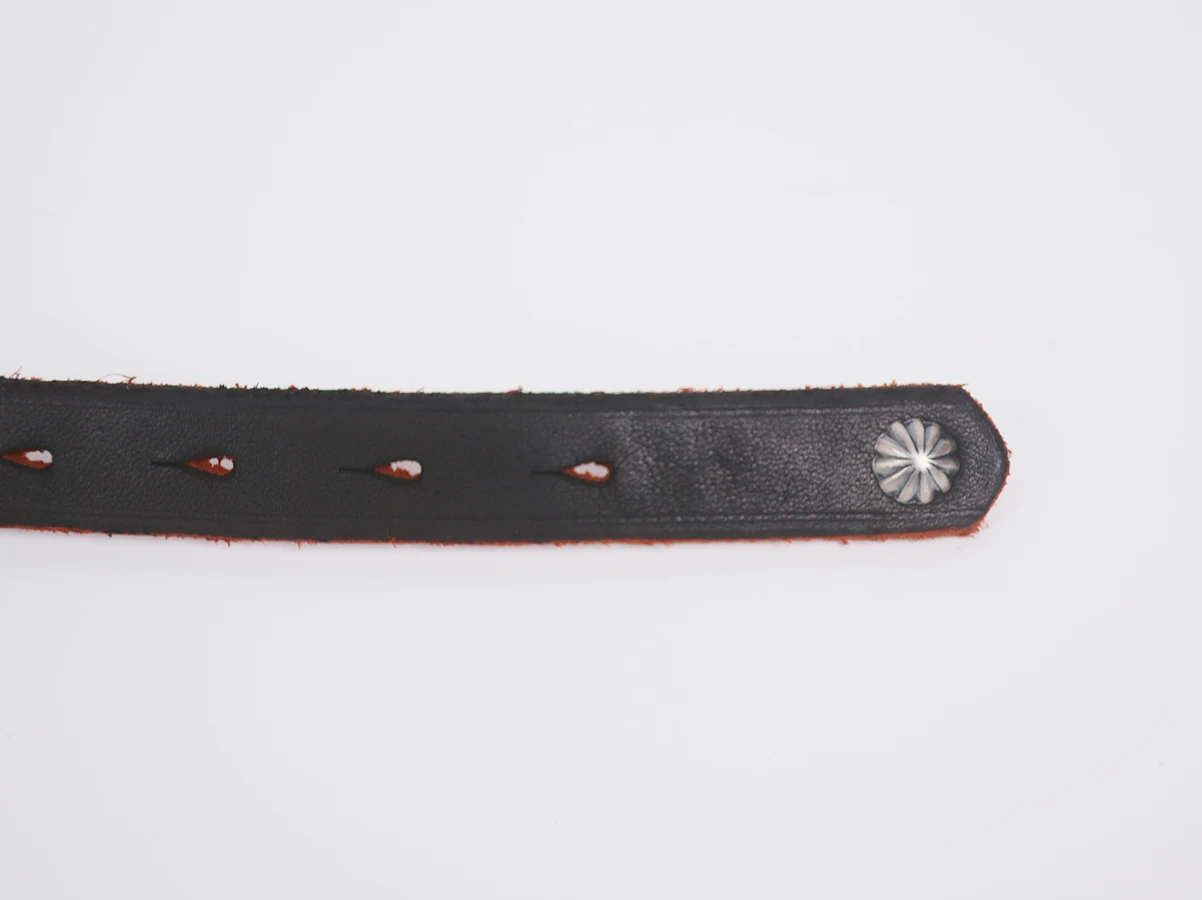 先端コンチョカスタムです。ベルト幅が細く全長を長くしたナローベルト。男女問わずお使い頂けるサイズフリーのレザーベルトになります。