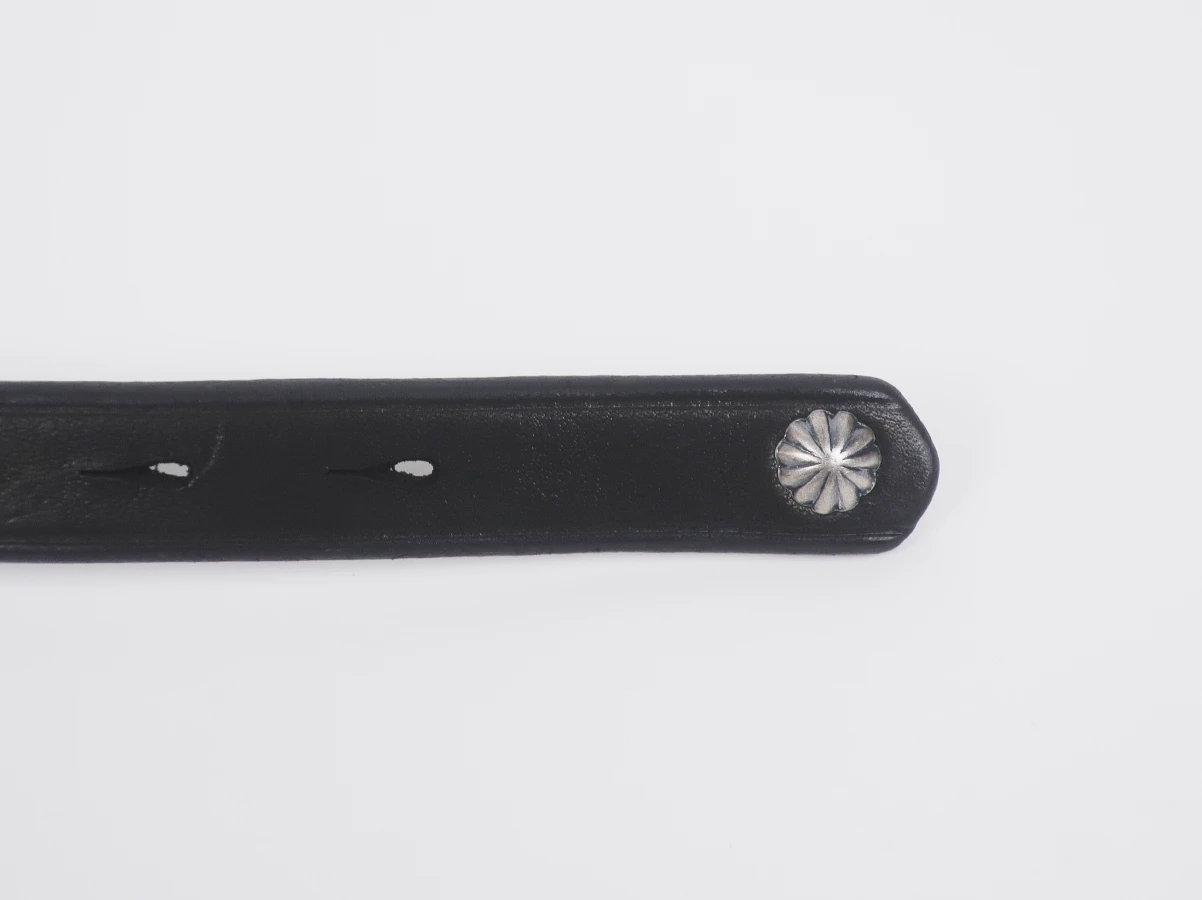 先端コンチョカスタムです。ベルト幅が細く全長を長くしたナローベルト。男女問わずお使い頂けるサイズフリーのレザーベルトになります。