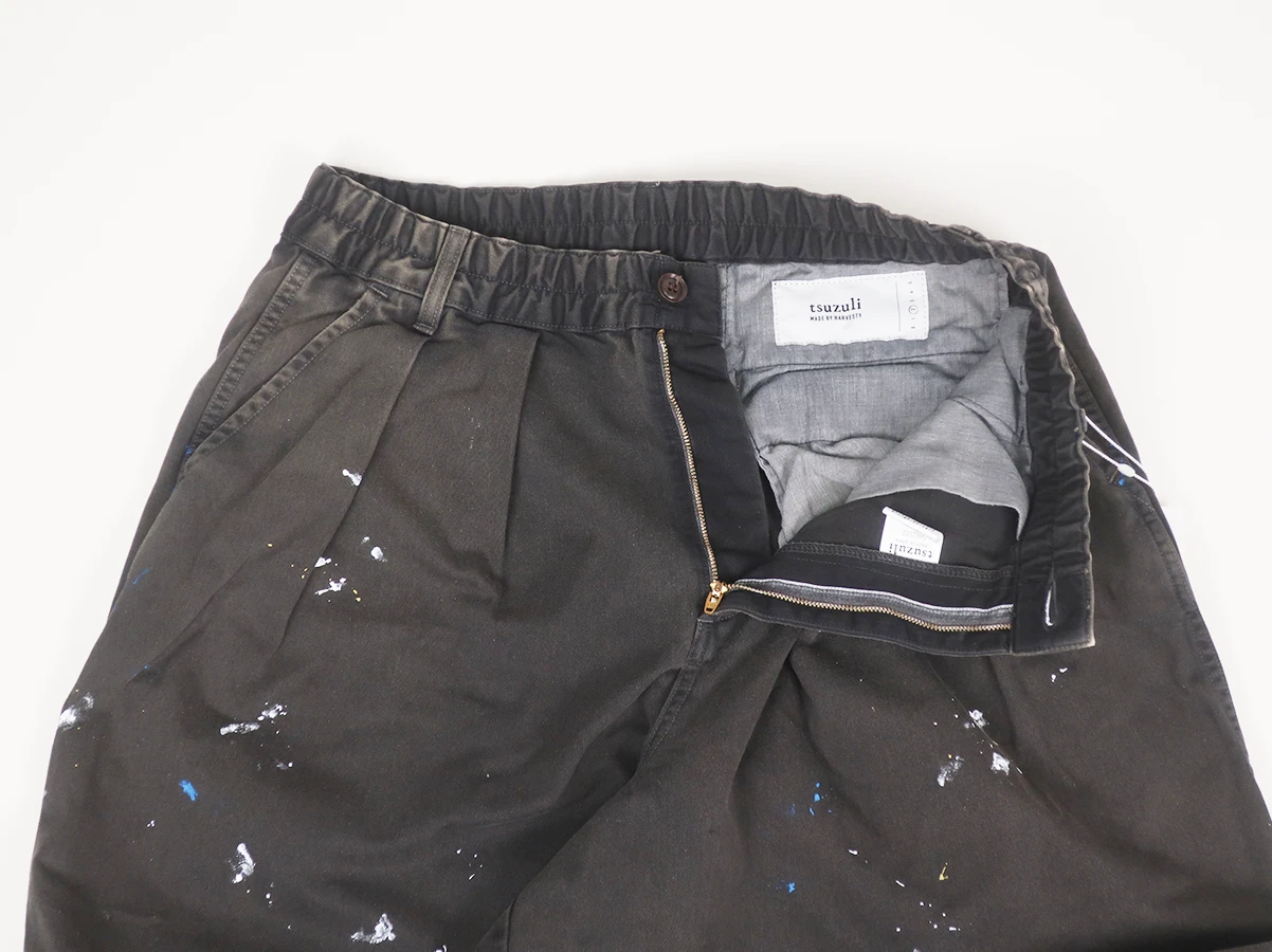 生地は粗野感のある綿チノ素材。激しめのリメイク加工でtsuzuliらしく再構築しました。