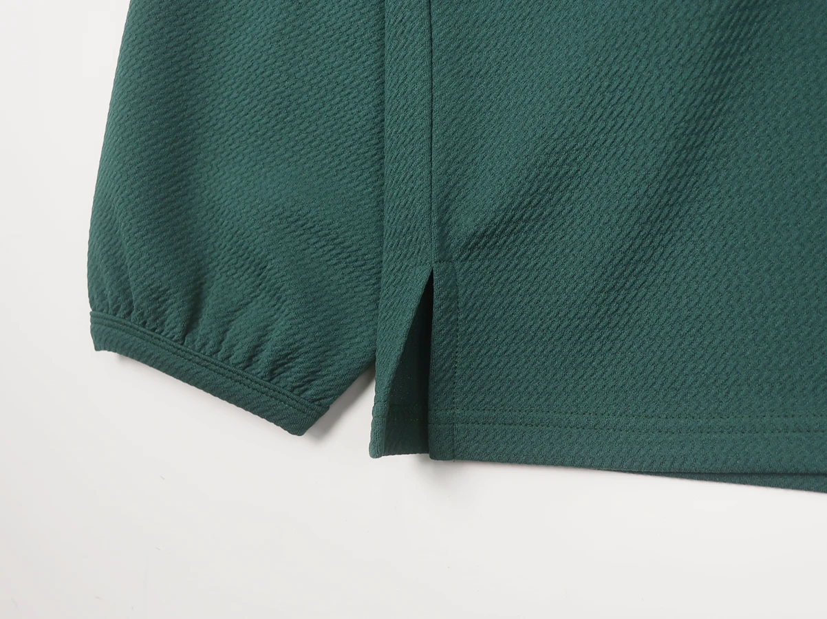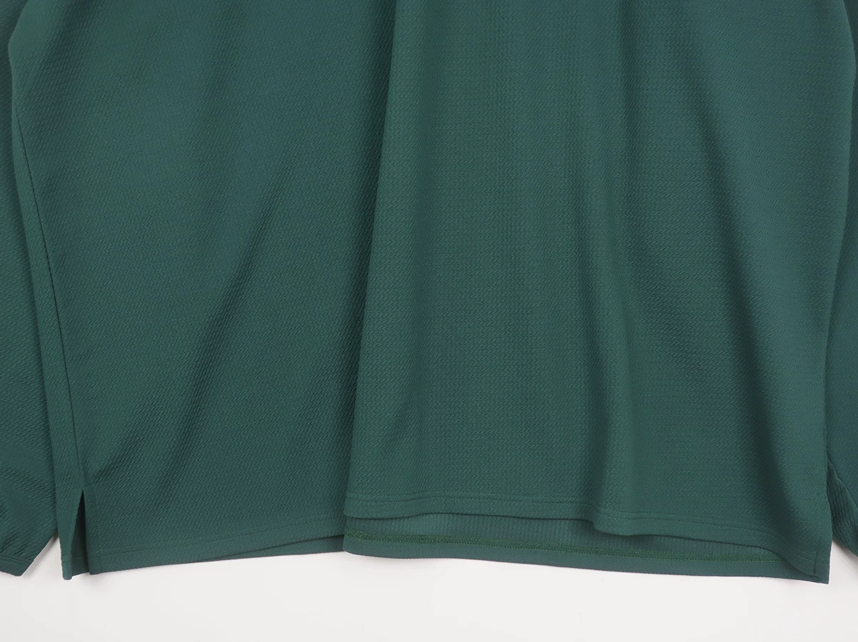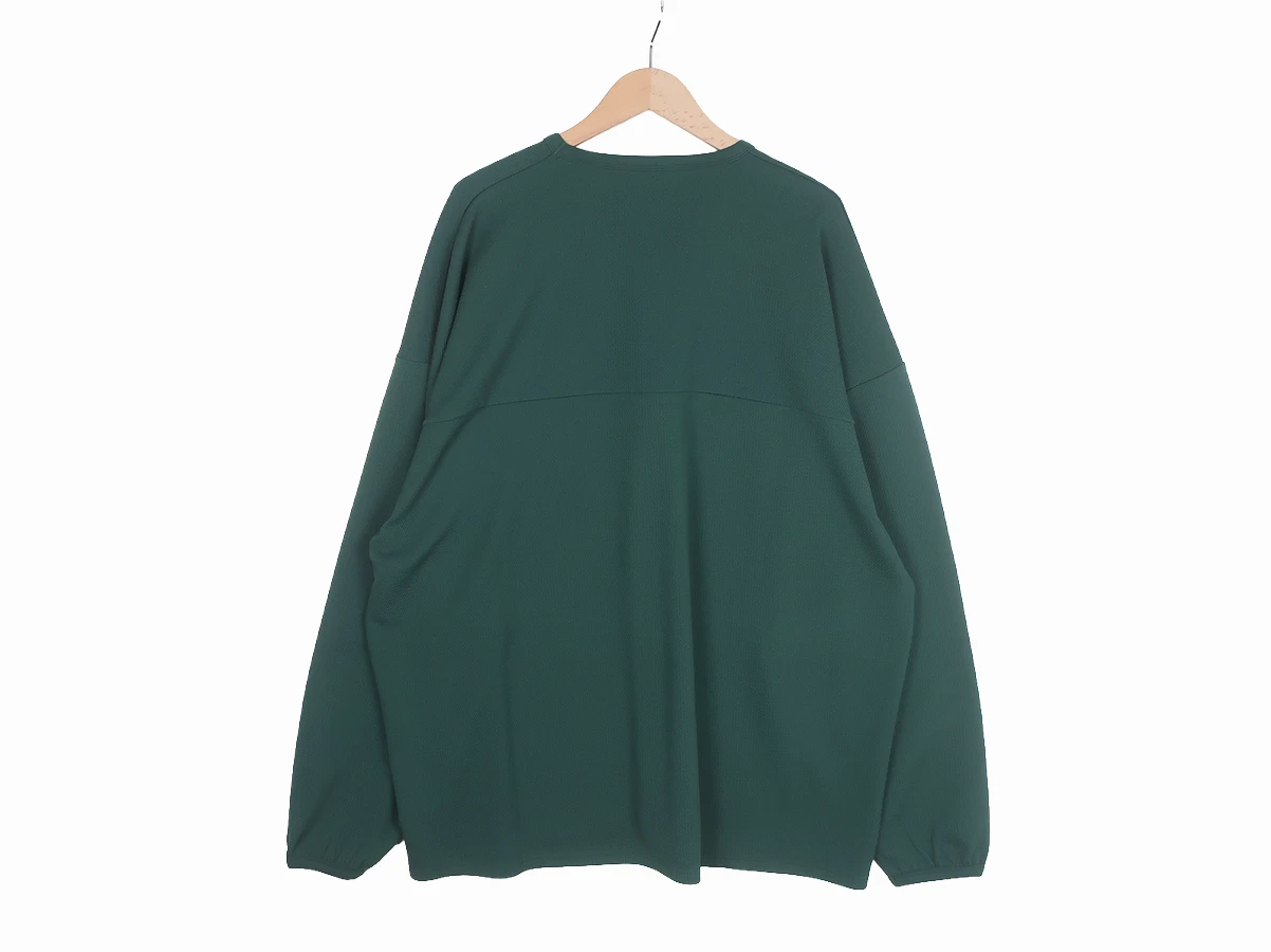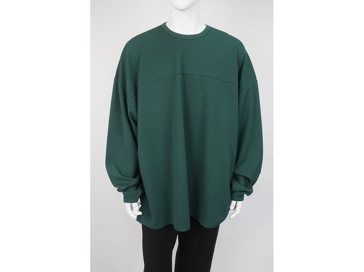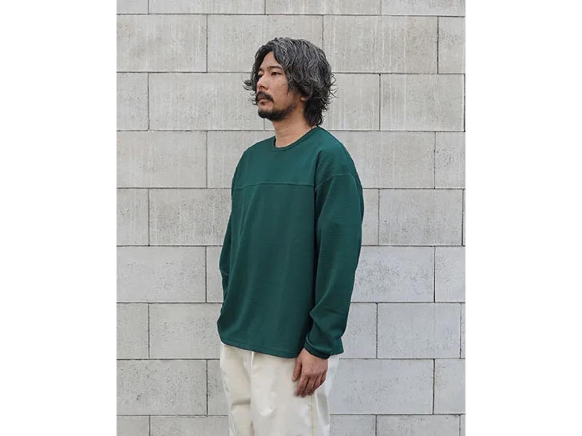 程よい厚みのあるワッフル生地を使用したゆったりシルエットのロングスリーブ。ポリエステル主体の軽量素材で、汗をかいてもベタつきにくいサラッとした着心地が魅力。