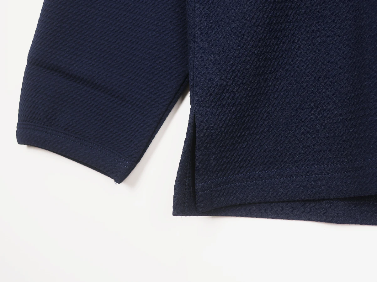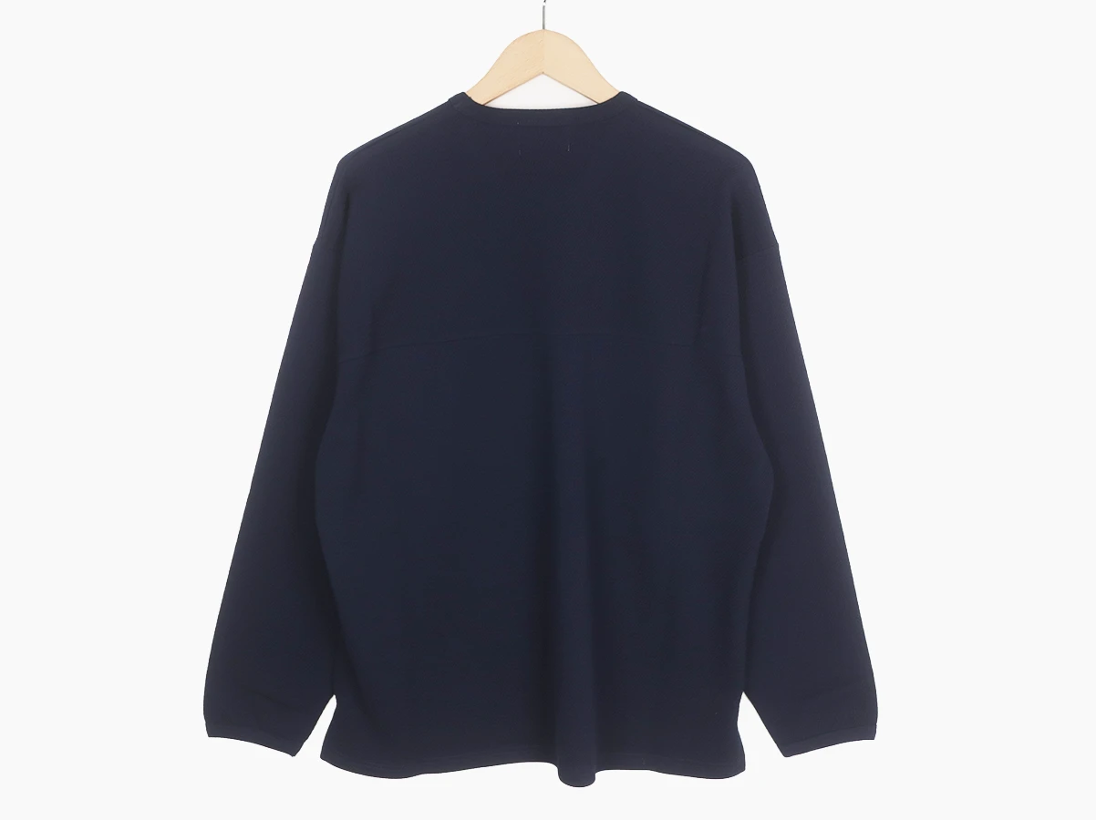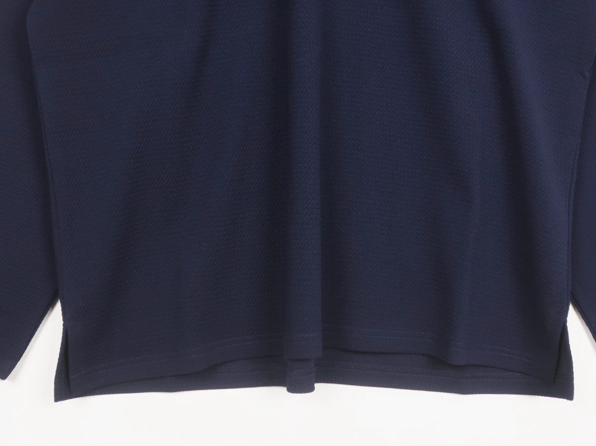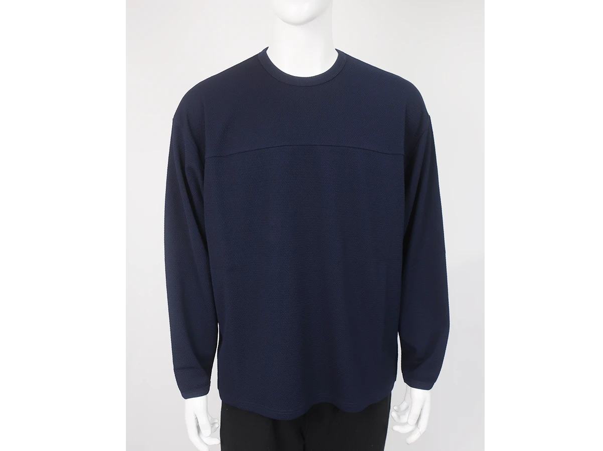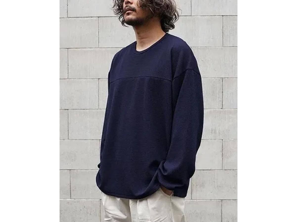 程よい厚みのあるワッフル生地を使用したゆったりシルエットのロングスリーブ。ポリエステル主体の軽量素材で、汗をかいてもベタつきにくいサラッとした着心地が魅力。