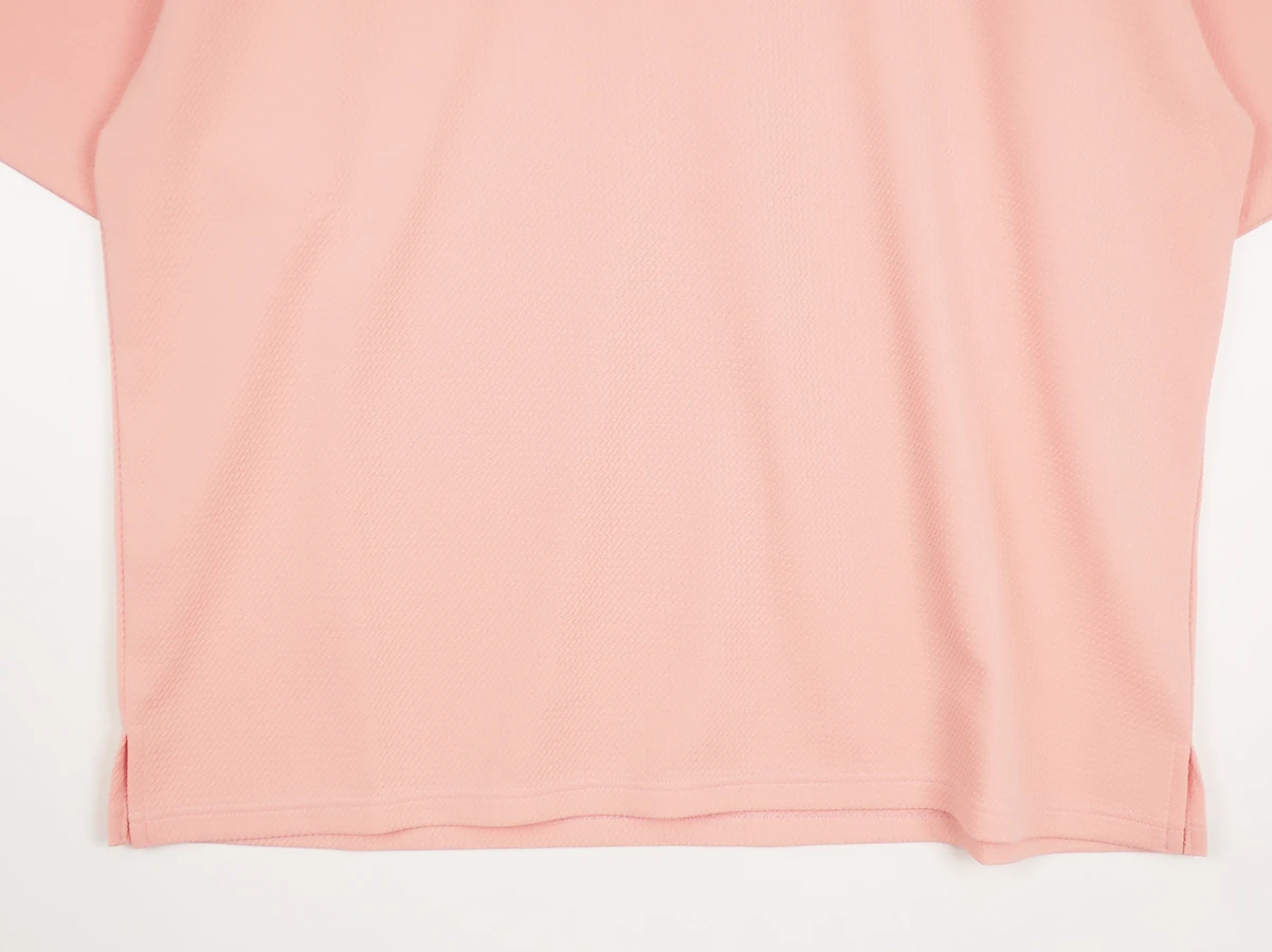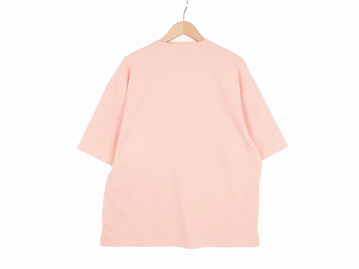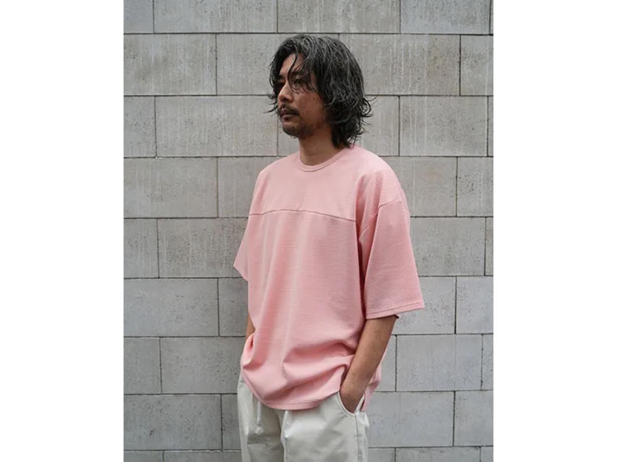 程よい厚みのあるワッフル生地を使用したゆったりシルエットのショートスリーブ。ポリエステル主体の軽量素材で、汗をかいてもベタつきにくいサラッとした着心地が魅力。