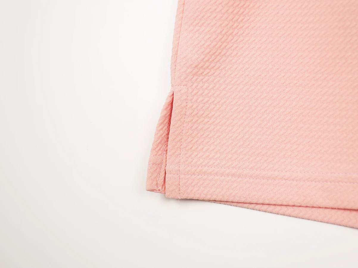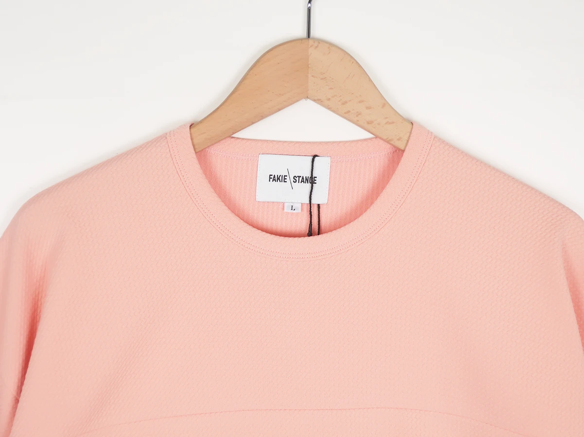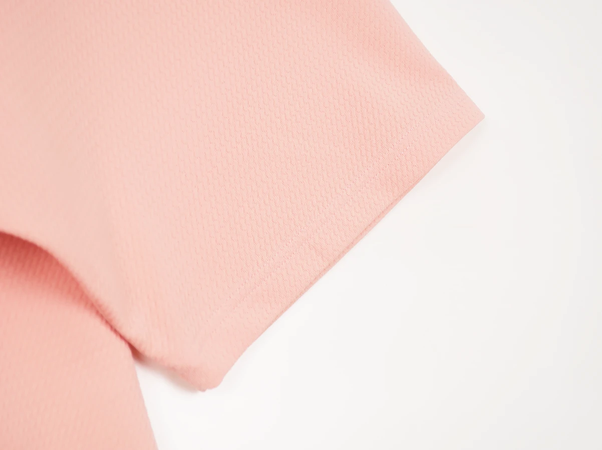 程よい厚みのあるワッフル生地を使用したゆったりシルエットのショートスリーブ。ポリエステル主体の軽量素材で、汗をかいてもベタつきにくいサラッとした着心地が魅力。