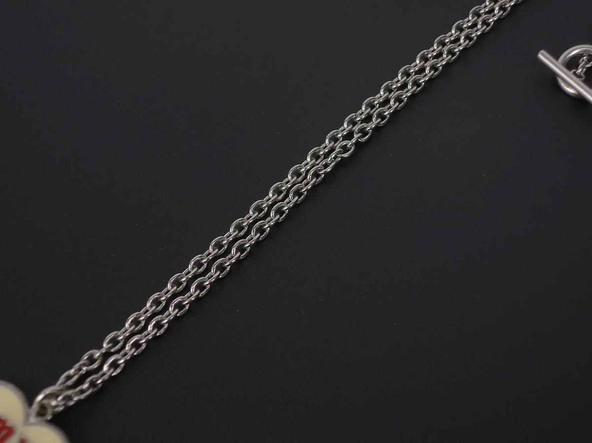 チャームに配されたグラフィックロゴが、シンプルながらもしっかりと主張するチャームネックレスです。