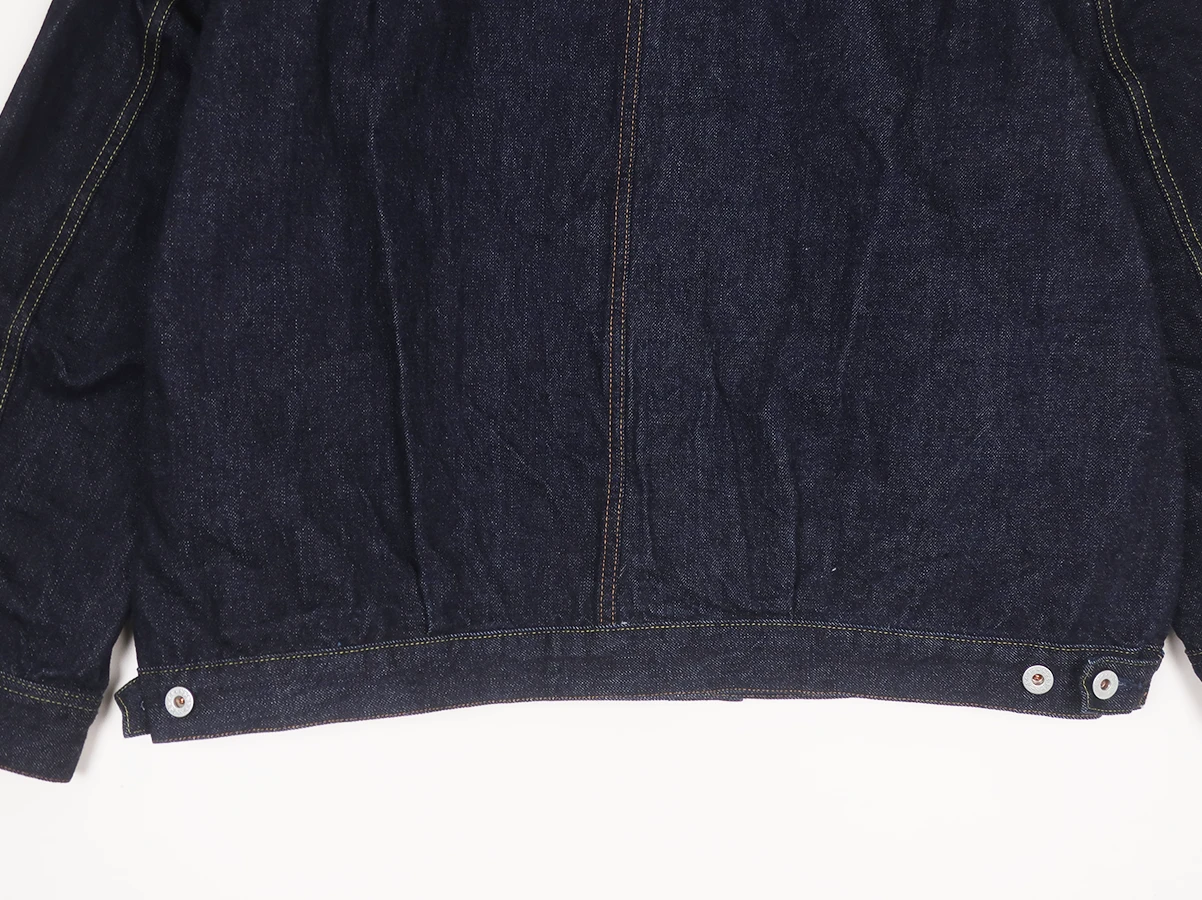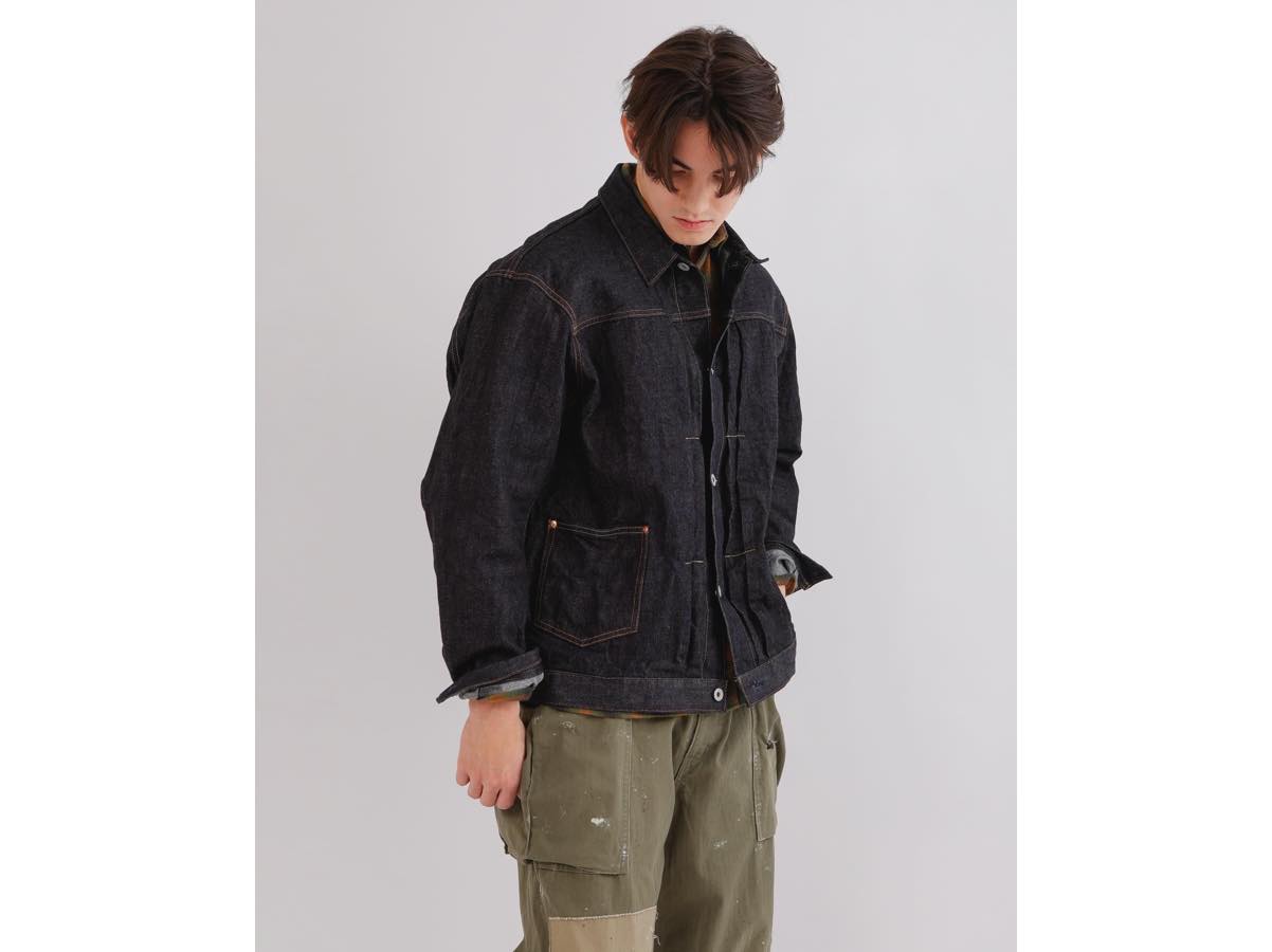 13.5ozのインディゴ・ローデニムを採用したワークジャケット。無骨な表情を持ちながらも、着込むほどに身体に馴染み、独自の経年変化を楽しめる一着です。