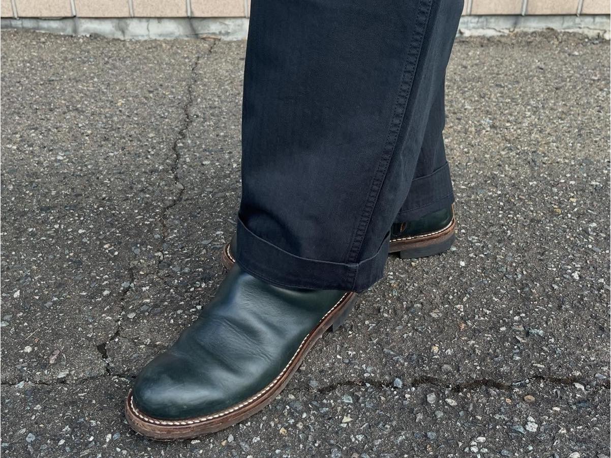ヘリンボーンツイル(HBT)を使用し、使い込まれたような風合いを追求したUSED WASH加工が施されています。無骨さと都会的な引き締まりが同居した佇まいに。