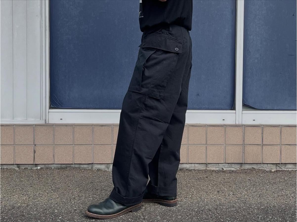 ミリタリー由来のディテールを残しながら、現代的なシルエットに昇華。ワークウェアからストリート、モード寄りスタイルまで合わせやすく、長い季節で活躍するトラウザーズです。