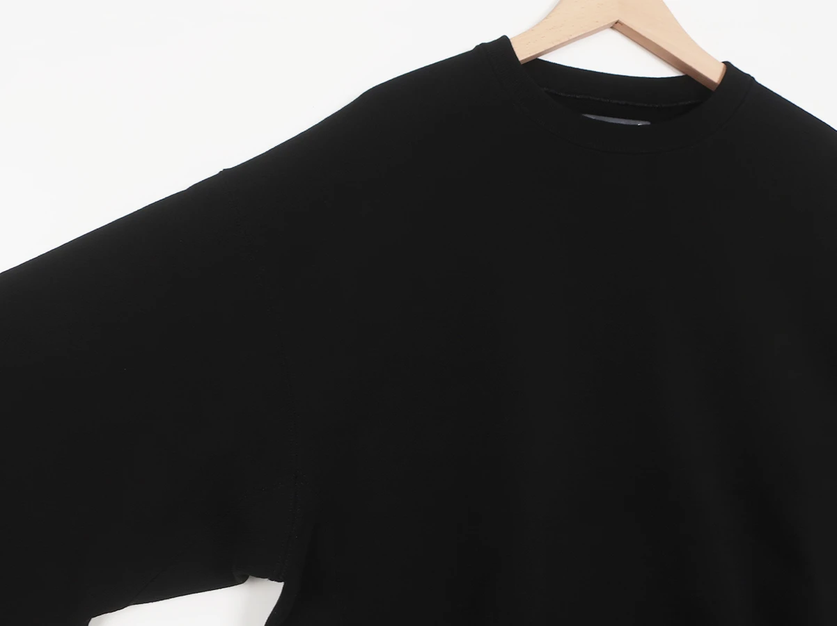 生地はRUSSELLで定評のあるPRO COTTONを採用し、深い黒色にこだわり最深色まで染色を重ねたスペシャルBLACKを別注。