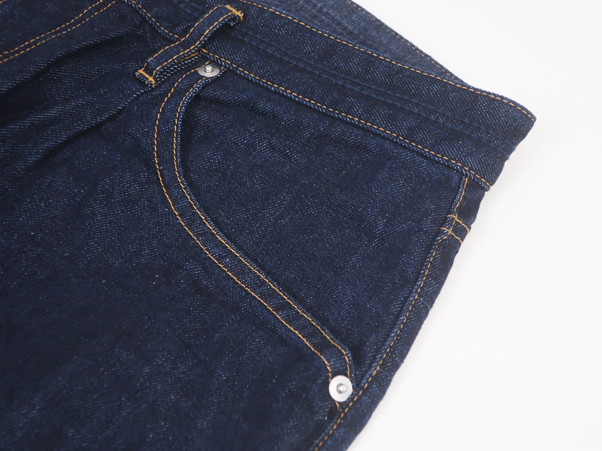 ワンウォッシュ+ボタンフライ仕様で、穿き込むほどにアタリや表情が育つのもポイント。スマートフォンが収まるコインポケットなど、日常使いに嬉しい気の利いたディテールも備えています。