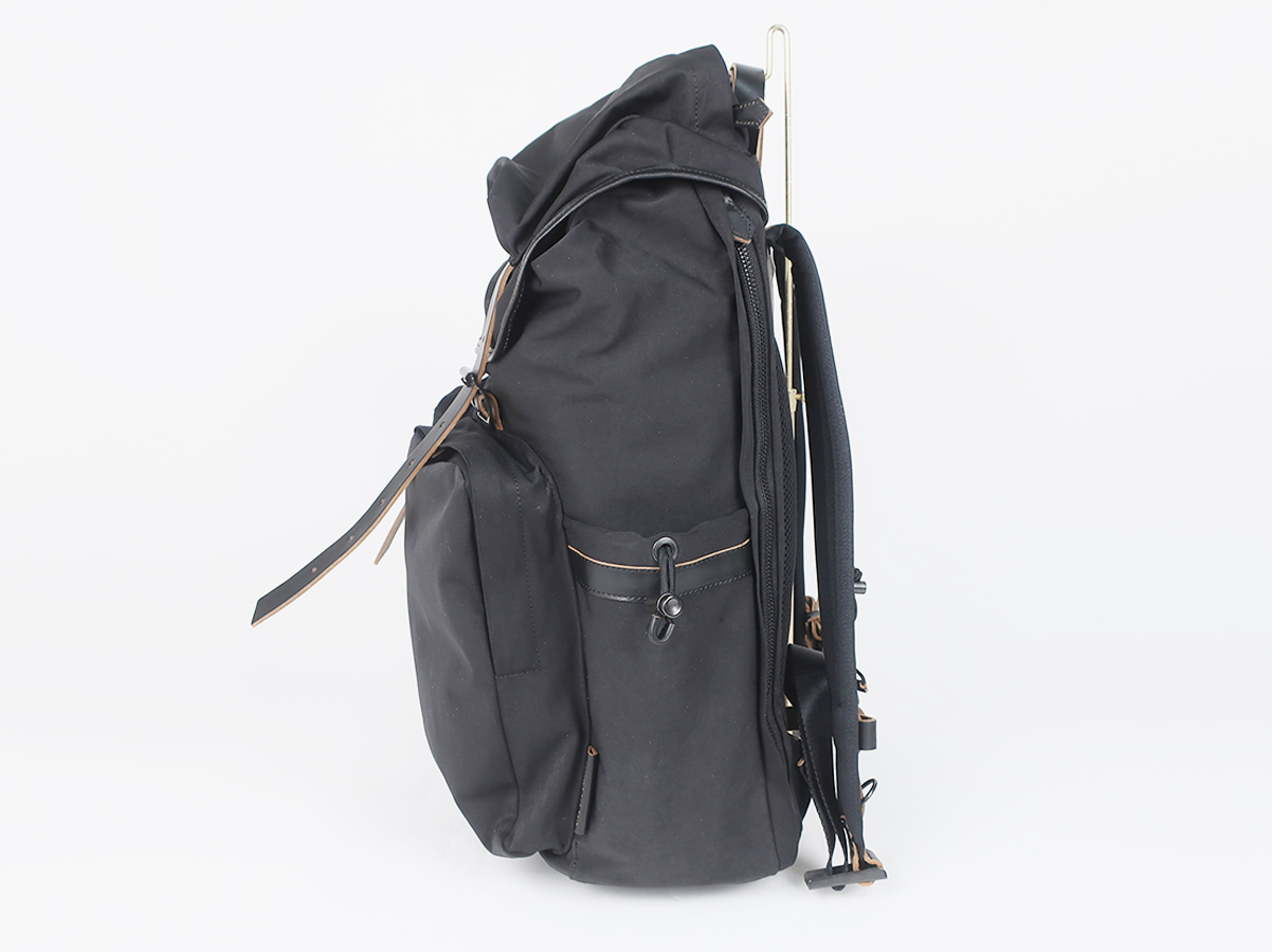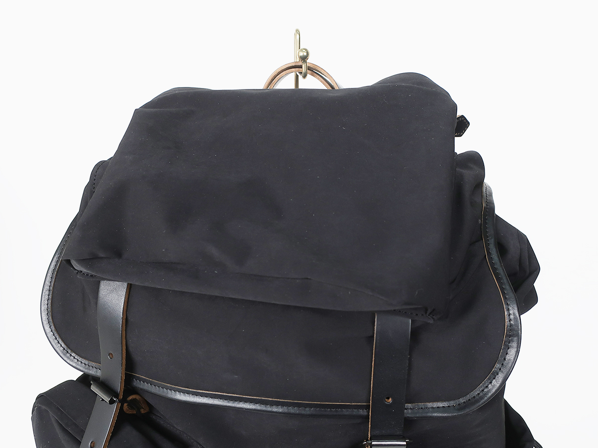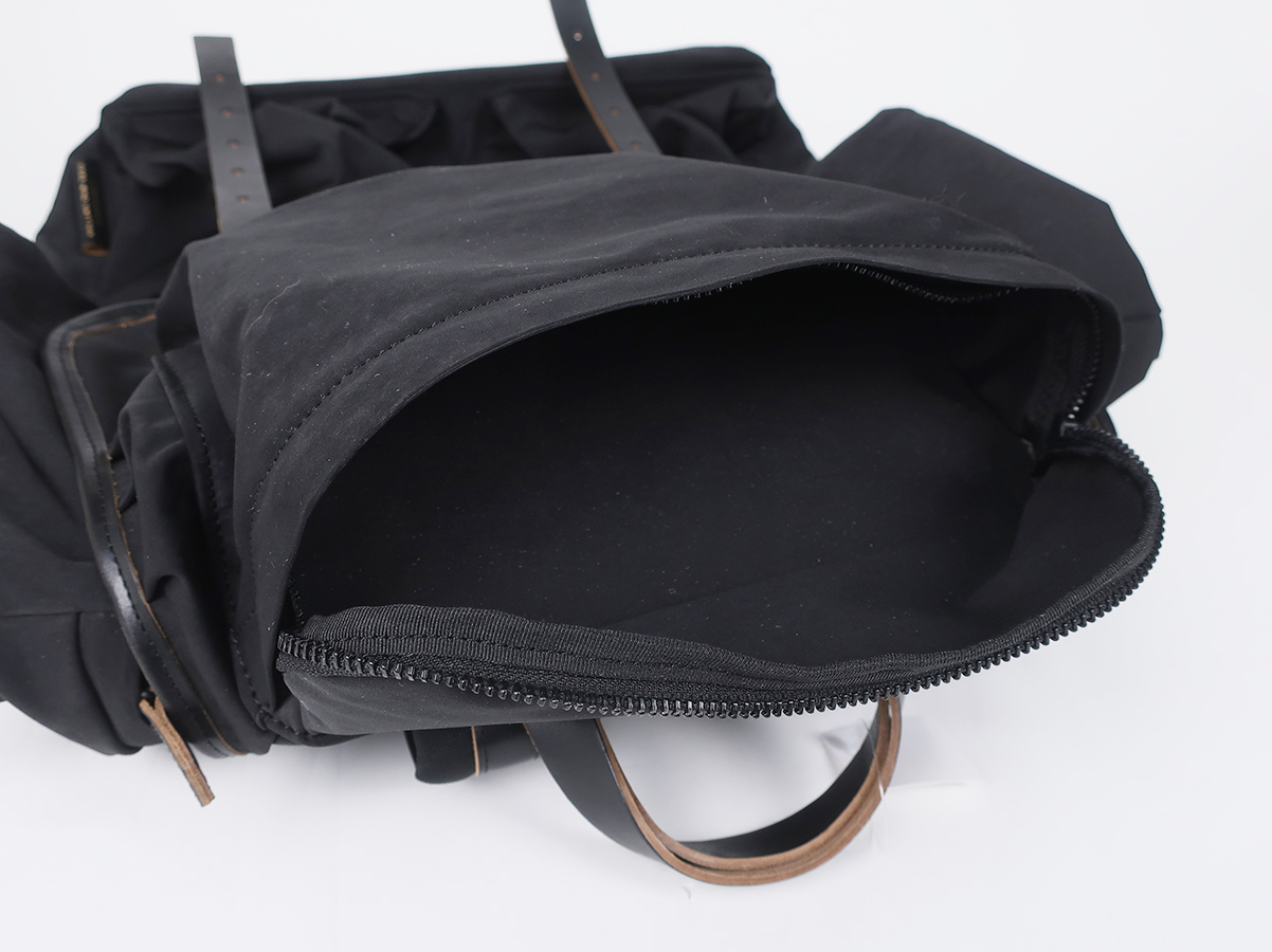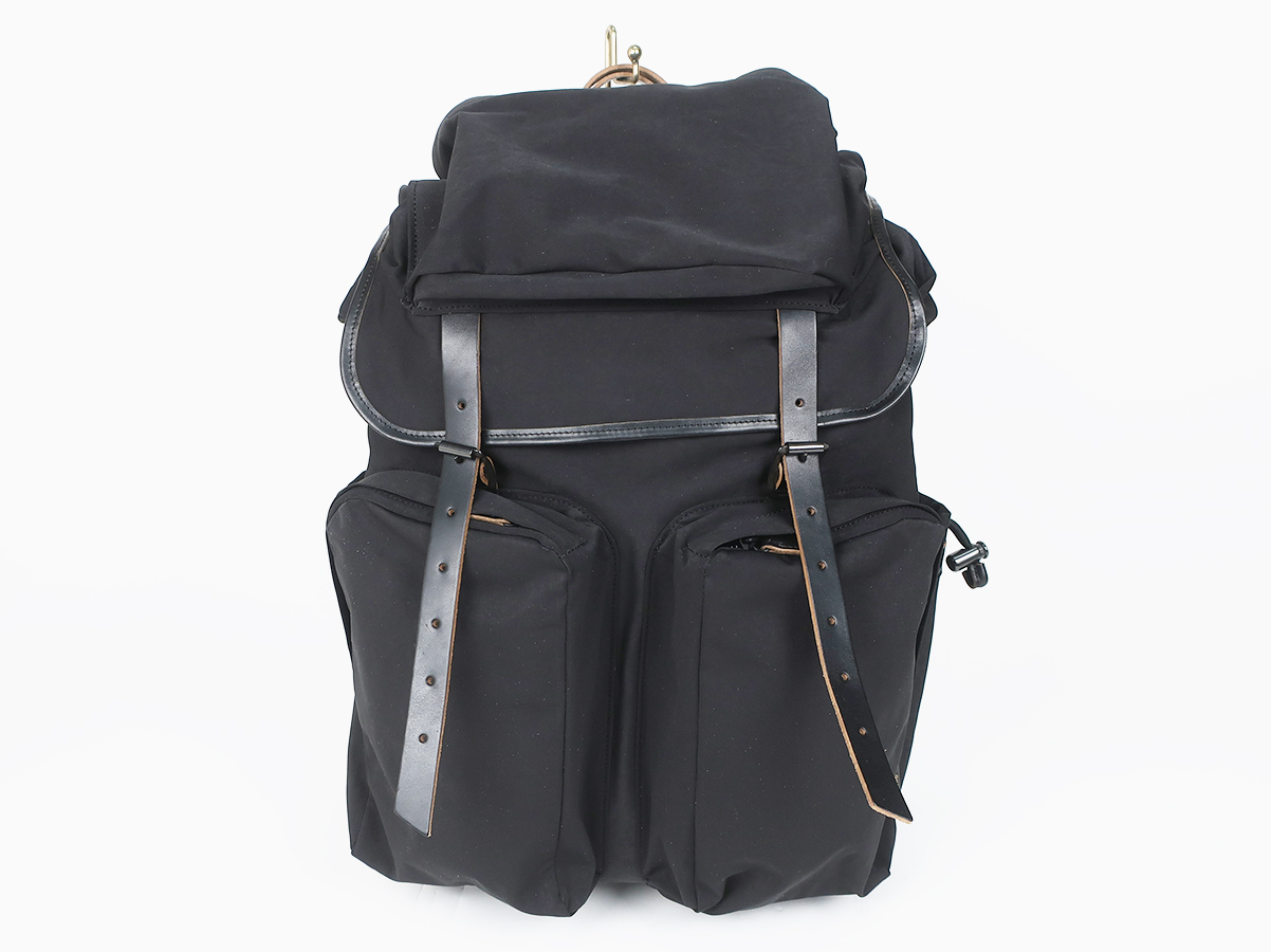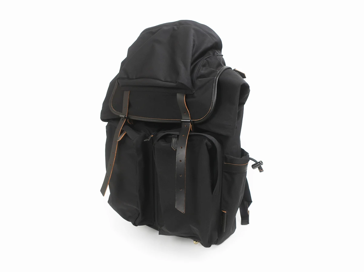 大容量で使い勝手の良い性能。素材による経年変化も楽しめるバックパックです。素材には超高密度ミリクロス生地が採用。ベルトや底にはローリングダブトリオのブーツでお馴染みのホースバットレザーが贅沢に使われております。バックルやボタンなどの留め具パーツにはブランドオリジナルの真鍮素材。
